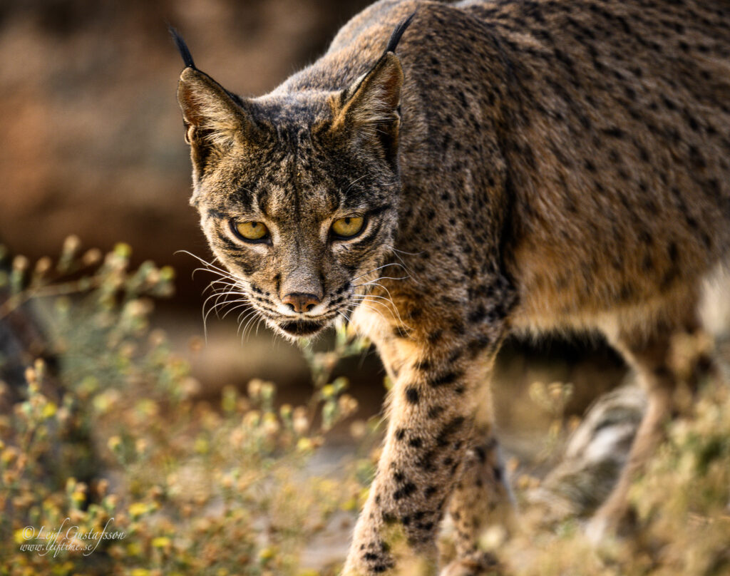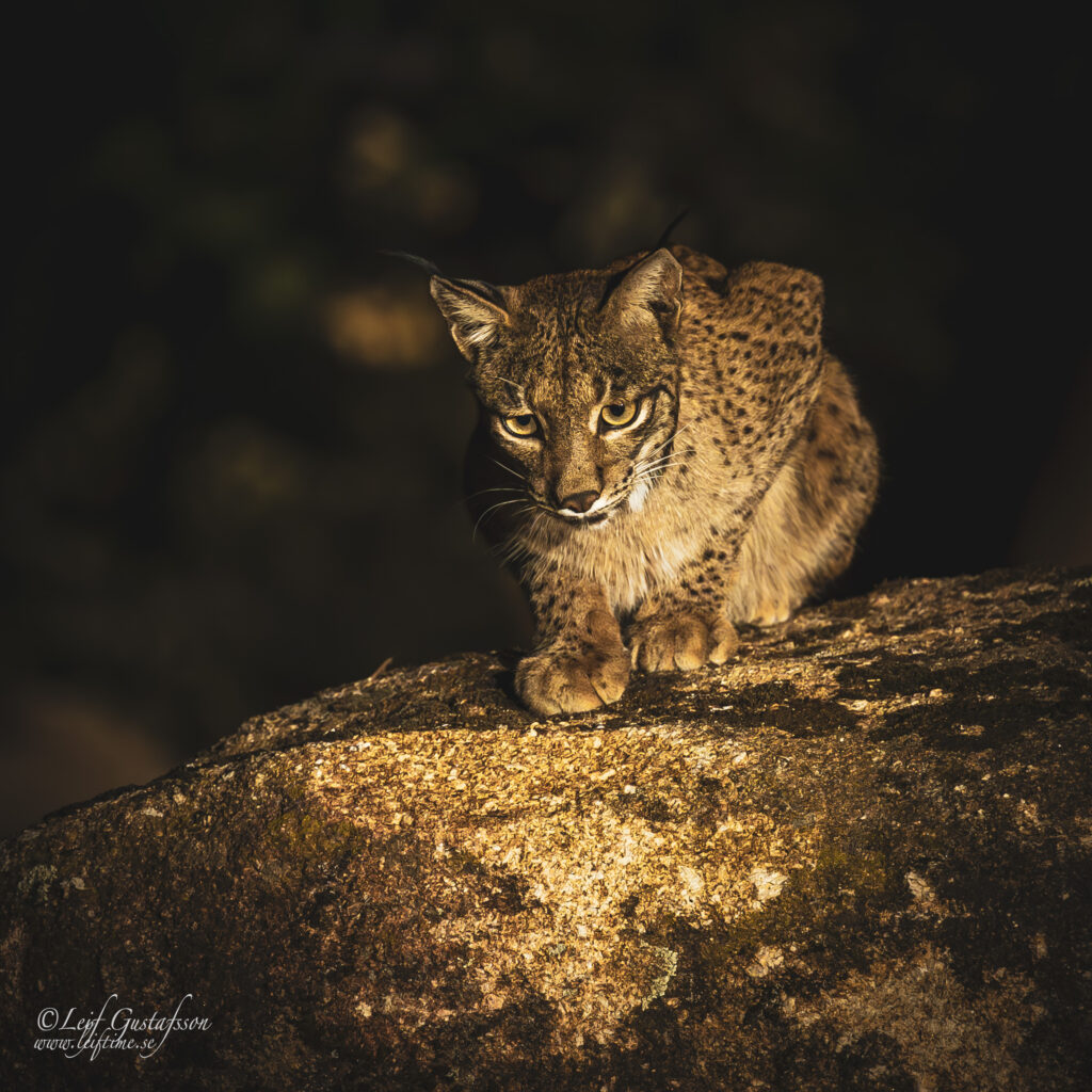 Panterlo (Lynx pardinus) kallas även iberisk lo. Arten har klassats som starkt hotad och ansågs i början av 2000-talet vara världens mest utsatta kattdjursart. Sedan 2002 har antalet individer ökat från 94 till över 2 000, vilket har gjort att arten har kunnat flyttas från statusen ”kritiskt utrotningshotad” till ”sårbar” på den globala rödlistan. Detta har skett bl.a. genom att öka antalet kaniner och att skydda lodjuren.Bilderna är tagna i Sierra de Andújar, som ligger i provinsen Jaén i Andalusien. Bilderna är tagna från ett gömsle. Magiskt att observera dessa vackra djur på nära nära håll. De mörkare bilderna är tagna under kvällen.