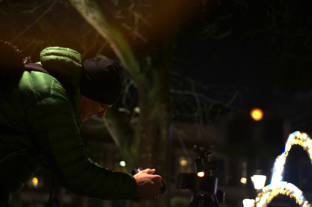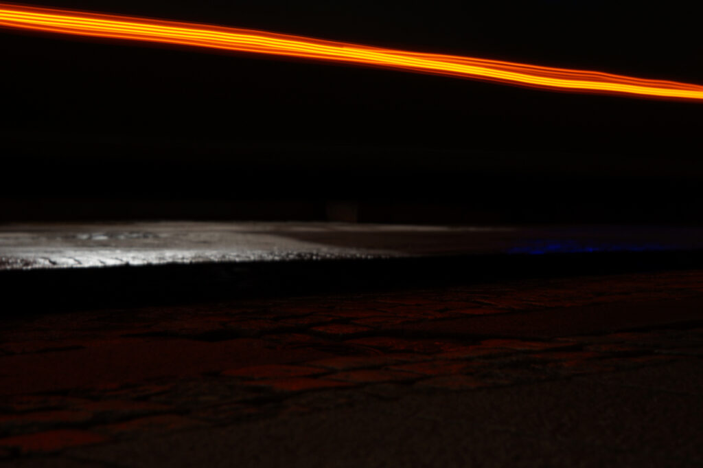 Man kan säga att dagens utmaning var att rigga en fälla för rörelsen – stativ och lång exponeringstid. Sen hoppas att ljus passerar förbi den utvalda platsen så man kan fånga och frysa fast det.