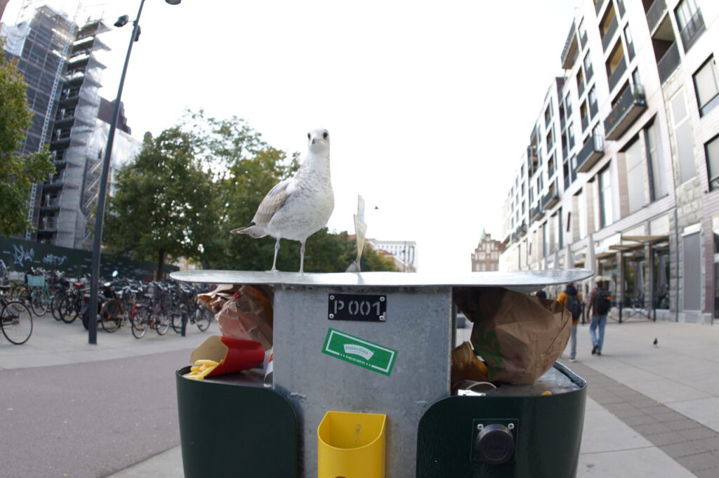 Miss! Rolig foto-grej att få struten engagerat i avfalls cykeln, tänkte jag men hmm, jag missade att få med cykel-pilarna i bild. Hamnade precis utan för :|