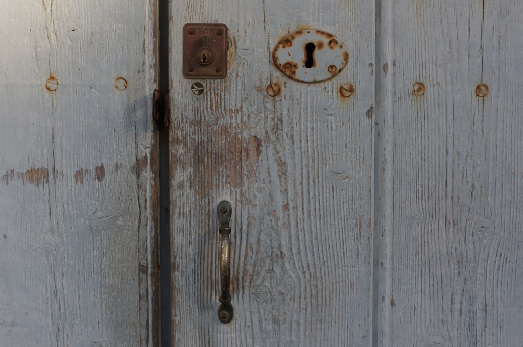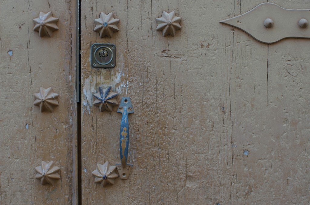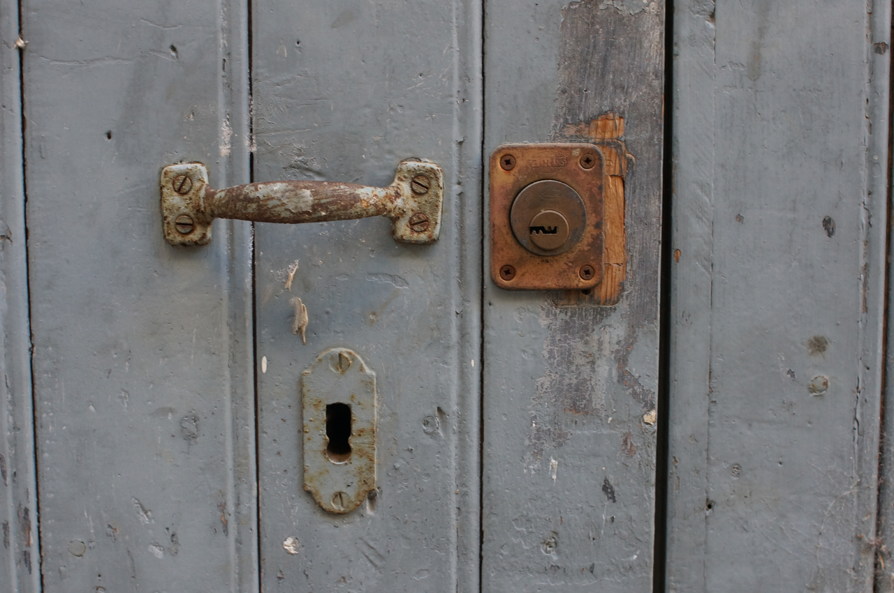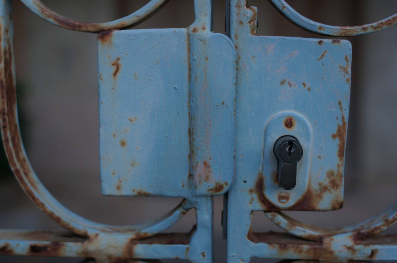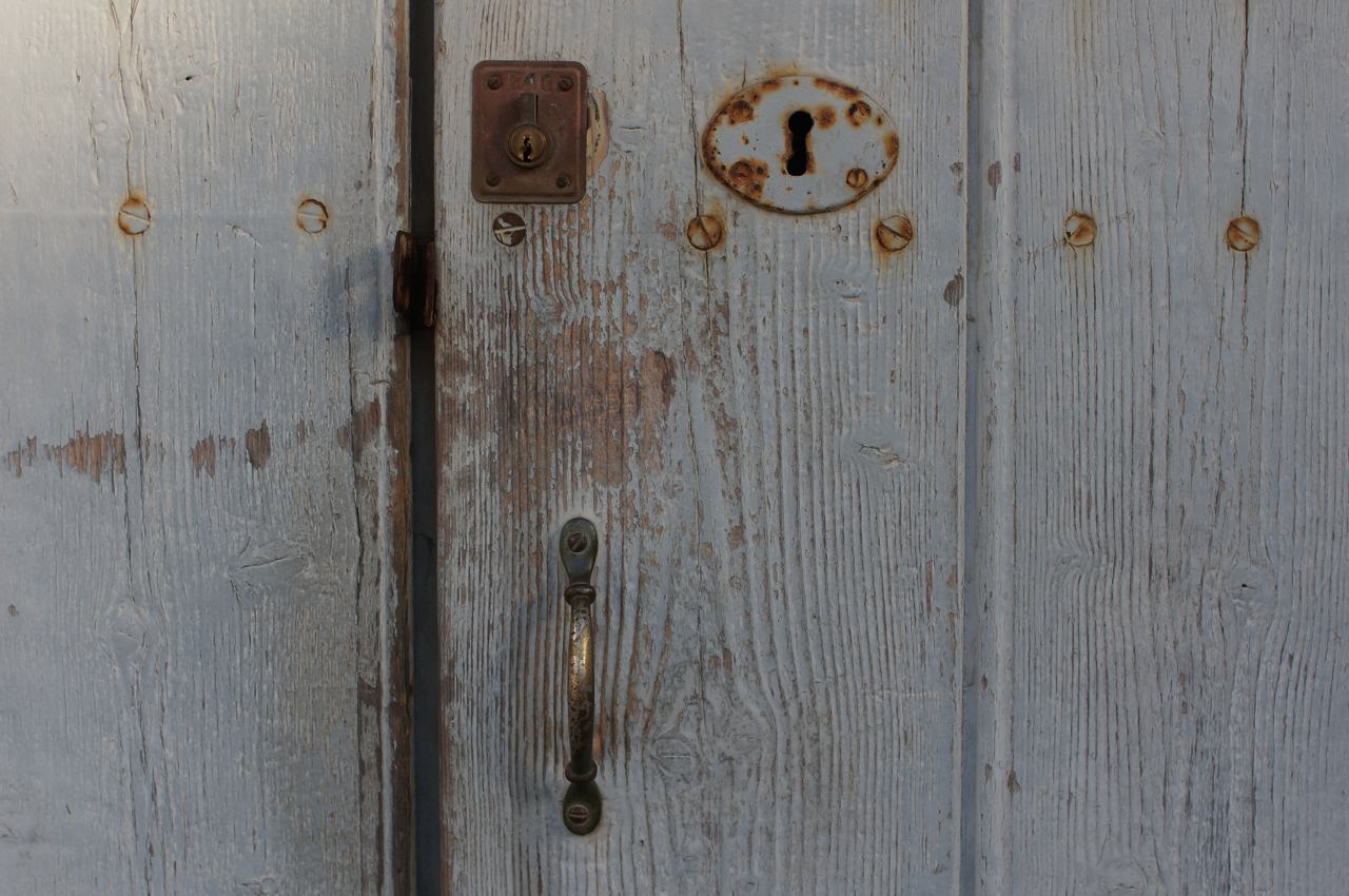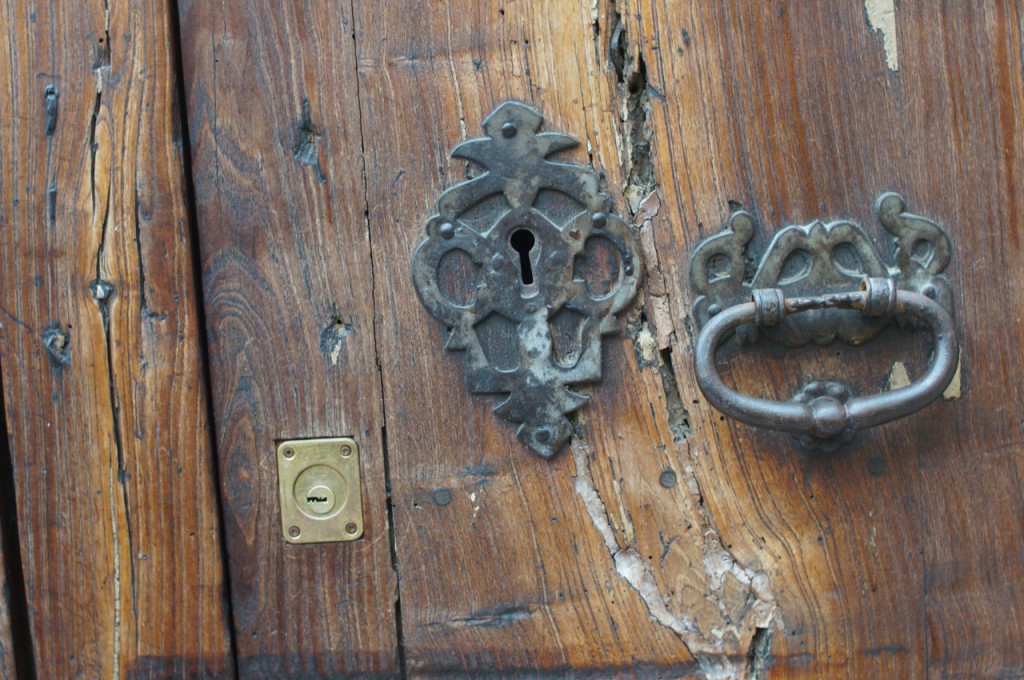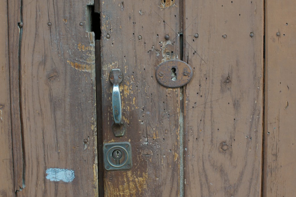 På jakt efter unika motiv i en lilla spansk turiststad upptäckte jag att alla dörrar till privata hus typiskt stod välkomnande på kläm på dagarna. Men också att alla dörrar o grindar var försett med lås som var överraskande varierande i utformningen (svensk lås = Assa lås) och bar på ett personligt avtryck efter högfrekvent användning – vackert slitage.