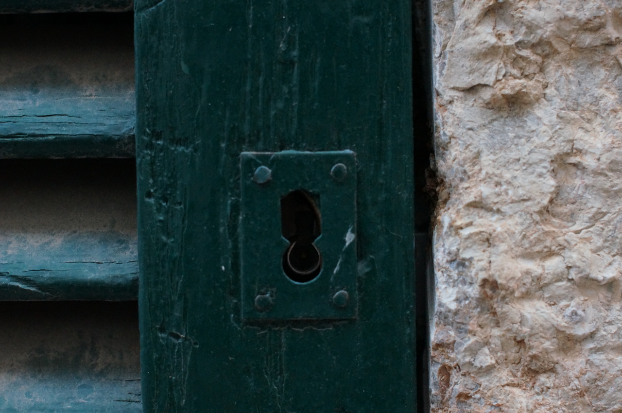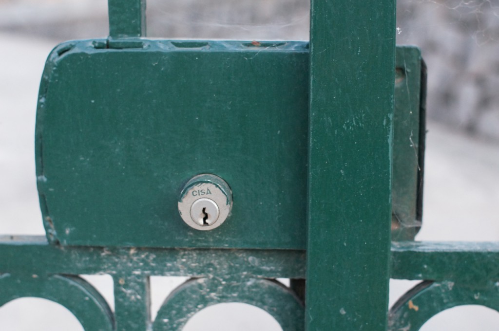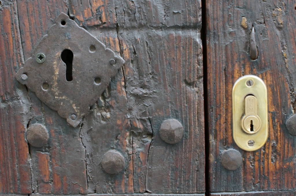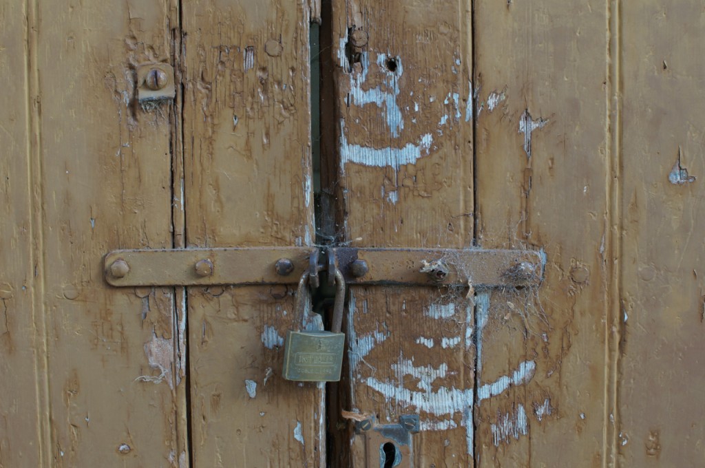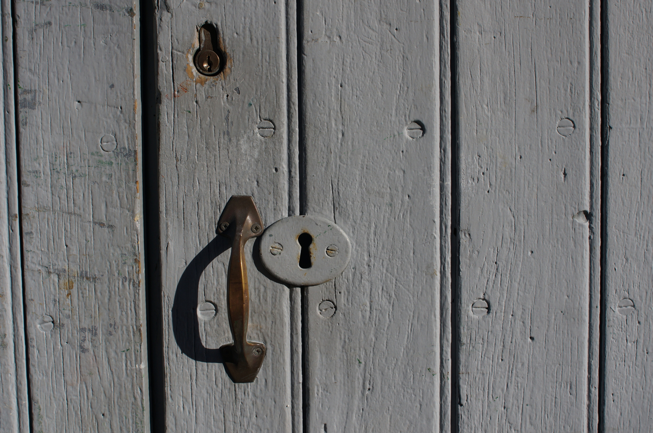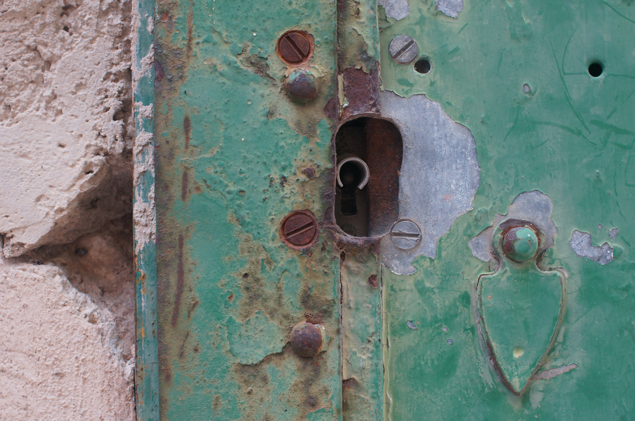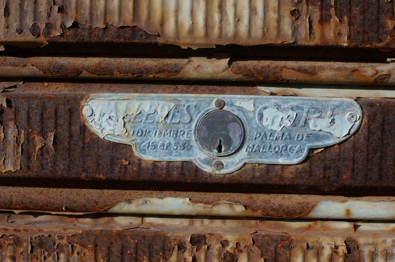 På jakt efter unika motiv i en lilla spansk turiststad upptäckte jag att alla dörrar till privata hus typiskt stod välkomnande på kläm på dagarna. Men också att alla dörrar o grindar var försett med lås som var överraskande varierande i utformningen (svensk lås = Assa lås) och bar på ett personligt avtryck efter högfrekvent användning – vackert slitage.