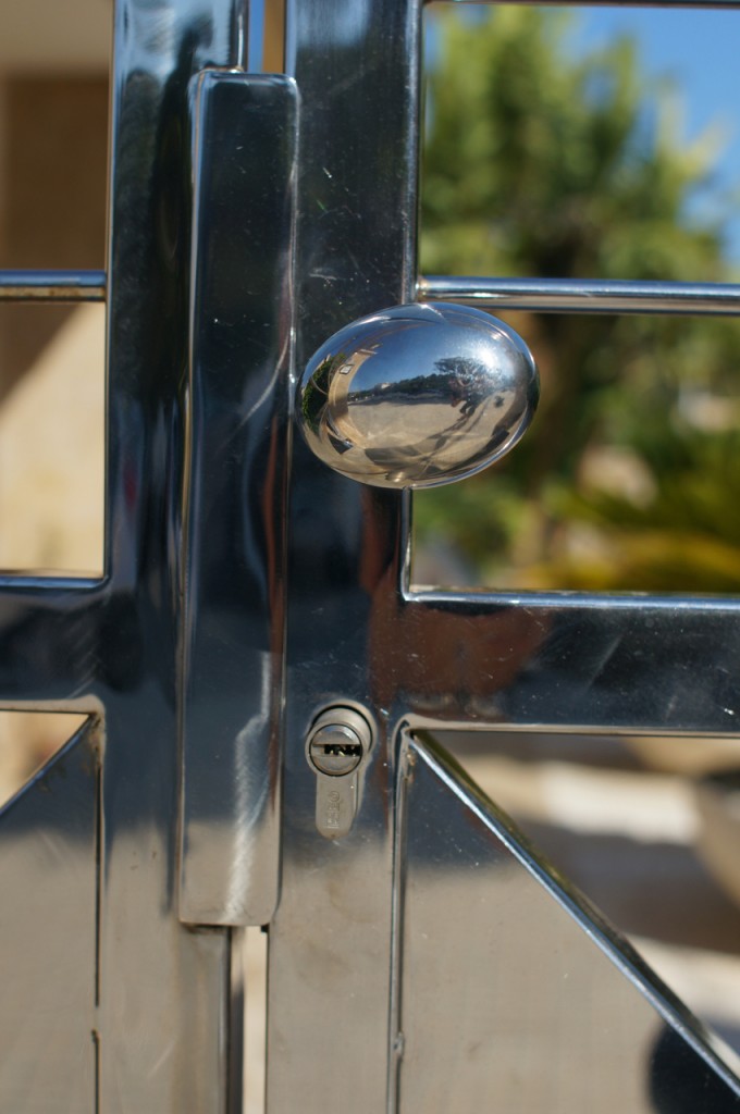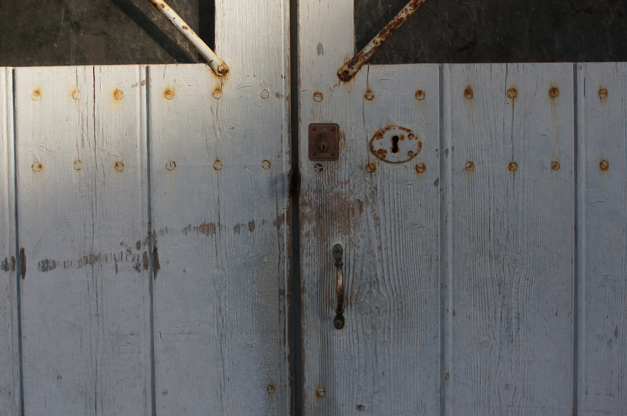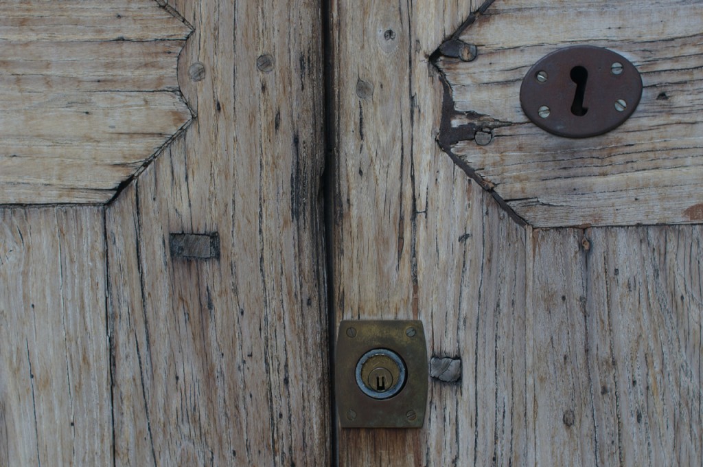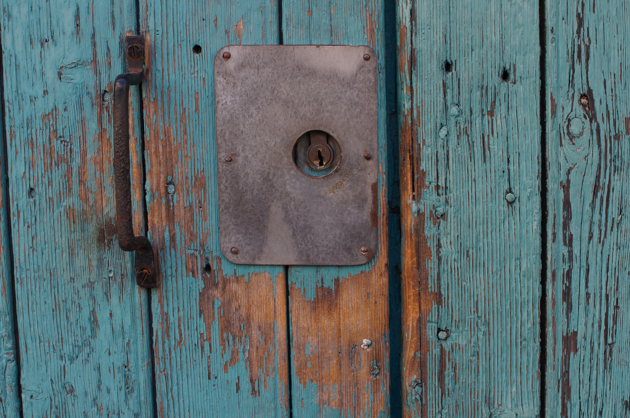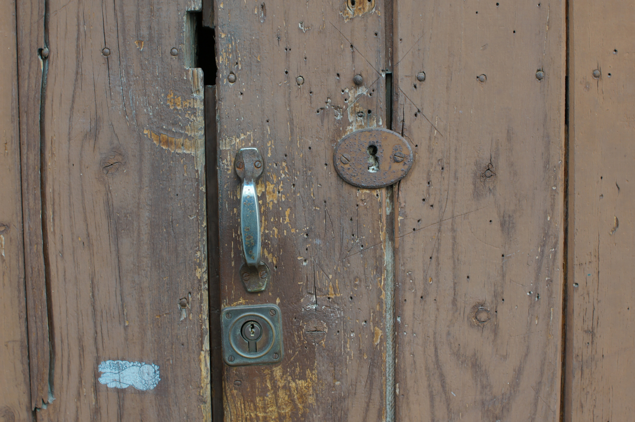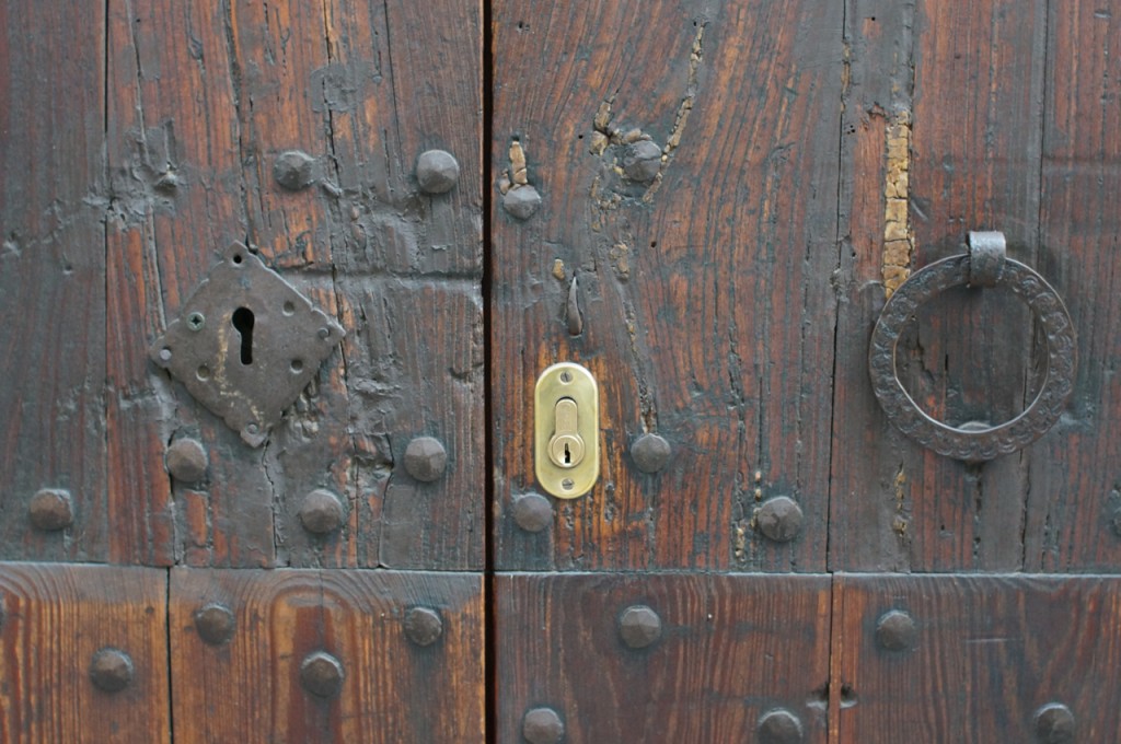 På jakt efter unika motiv i en lilla spansk turiststad upptäckte jag att alla dörrar till privata hus typiskt stod välkomnande på kläm på dagarna. Men också att alla dörrar o grindar var försett med lås som var överraskande varierande i utformningen (svensk lås = Assa lås) och bar på ett personligt avtryck efter högfrekvent användning – vackert slitage.