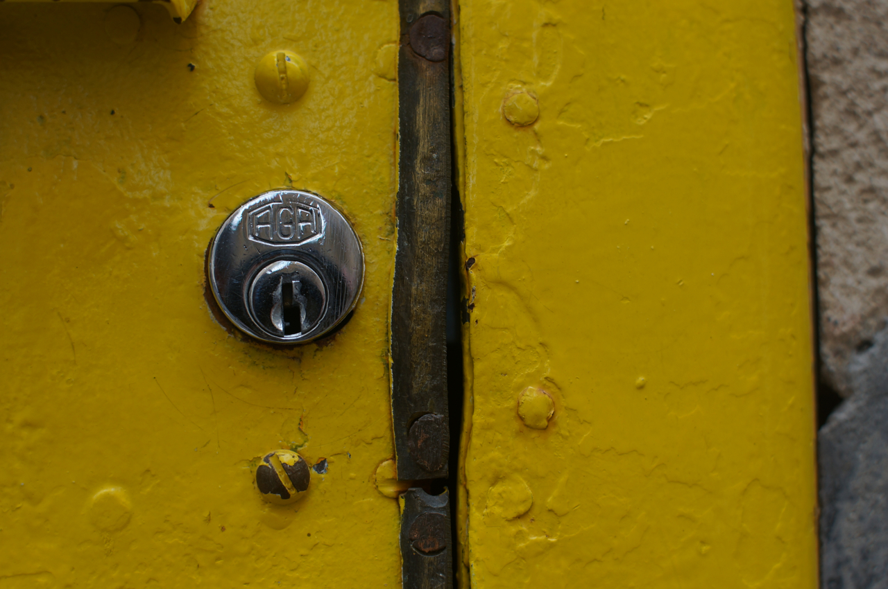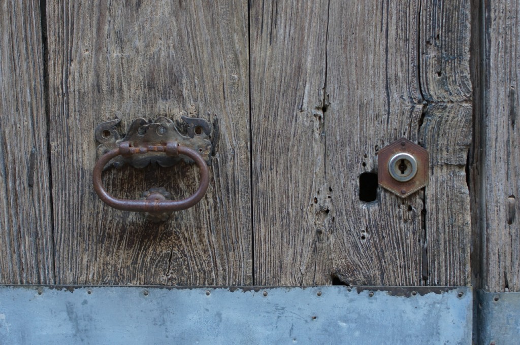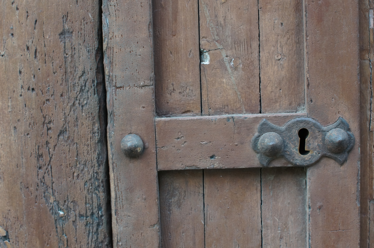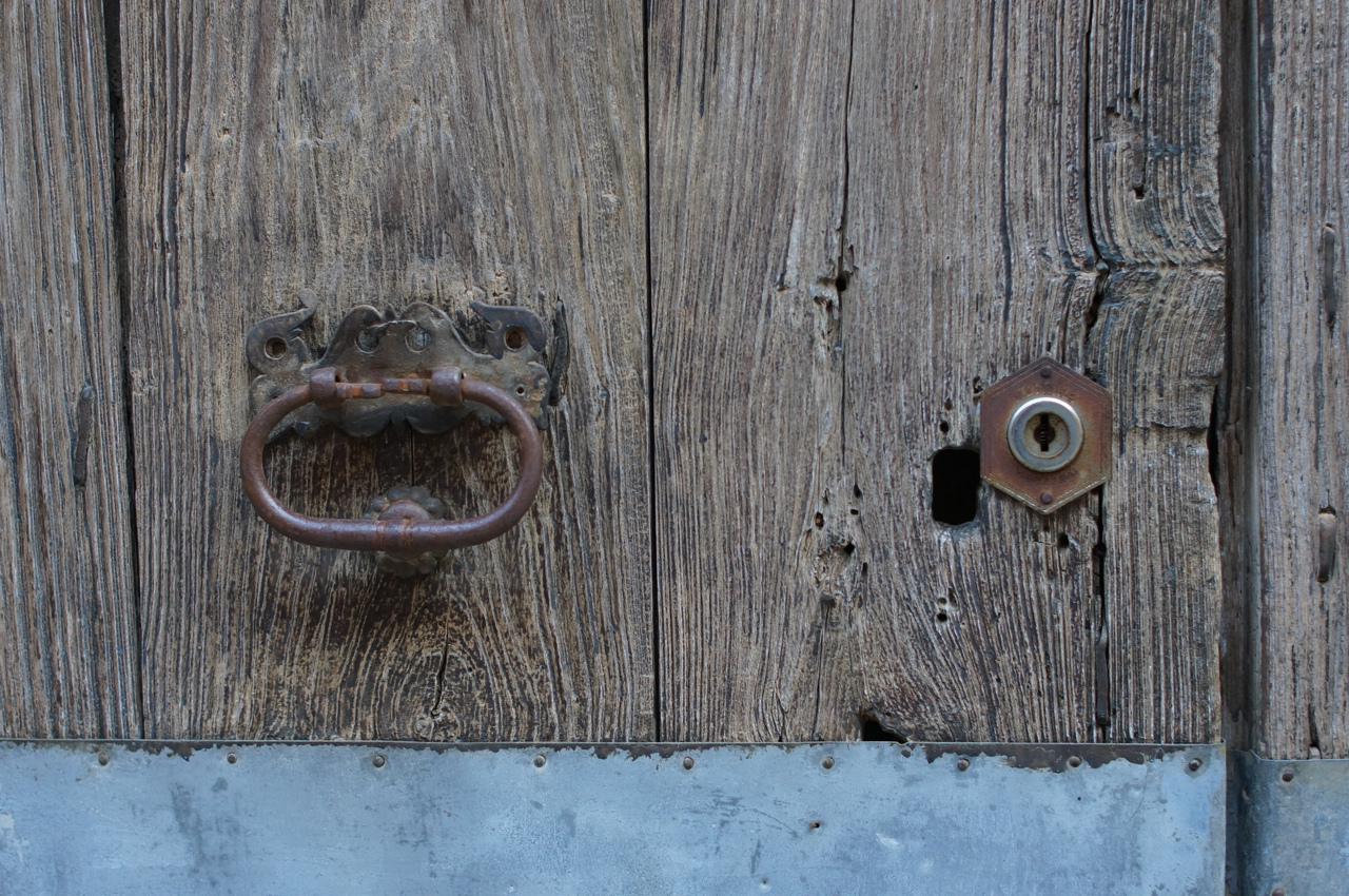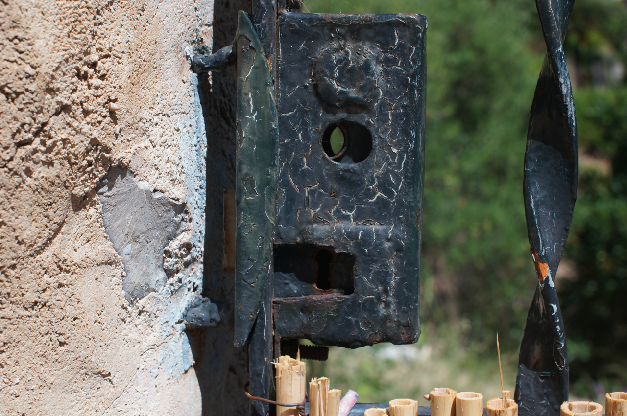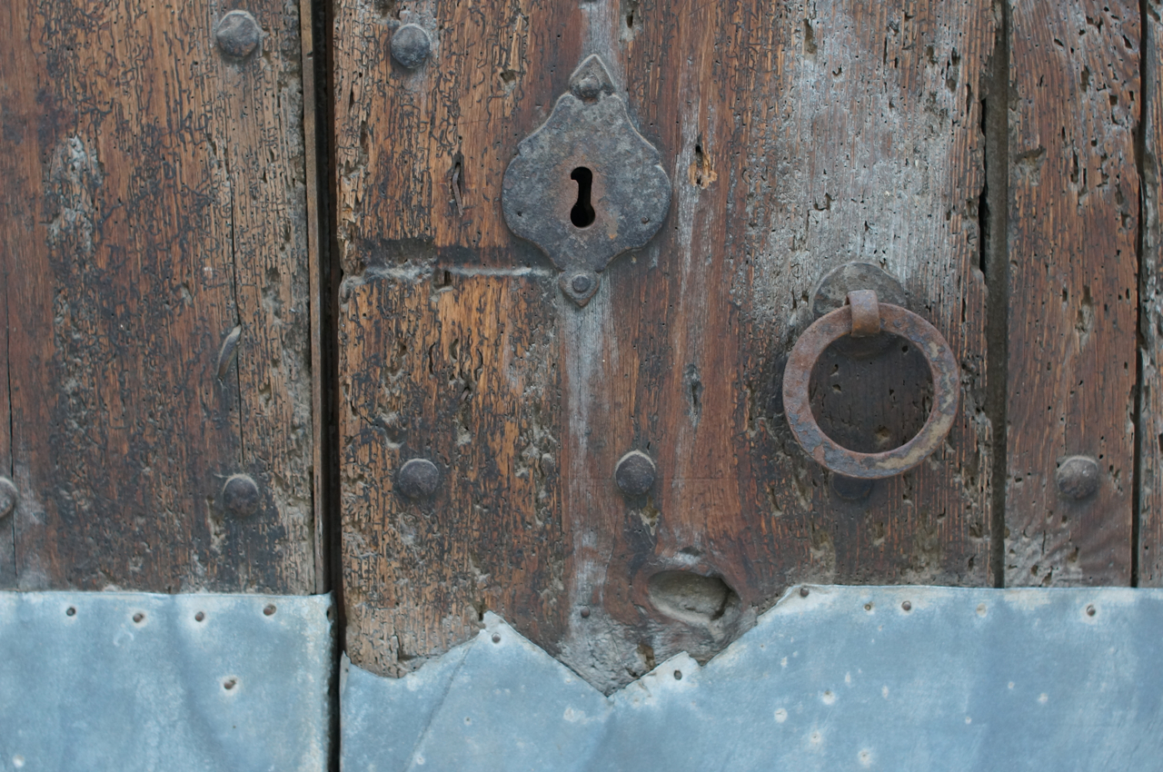 På jakt efter unika motiv i en lilla spansk turiststad upptäckte jag att alla dörrar till privata hus typiskt stod välkomnande på kläm på dagarna. Men också att alla dörrar o grindar var försett med lås som var överraskande varierande i utformningen (svensk lås = Assa lås) och bar på ett personligt avtryck efter högfrekvent användning – vackert slitage.