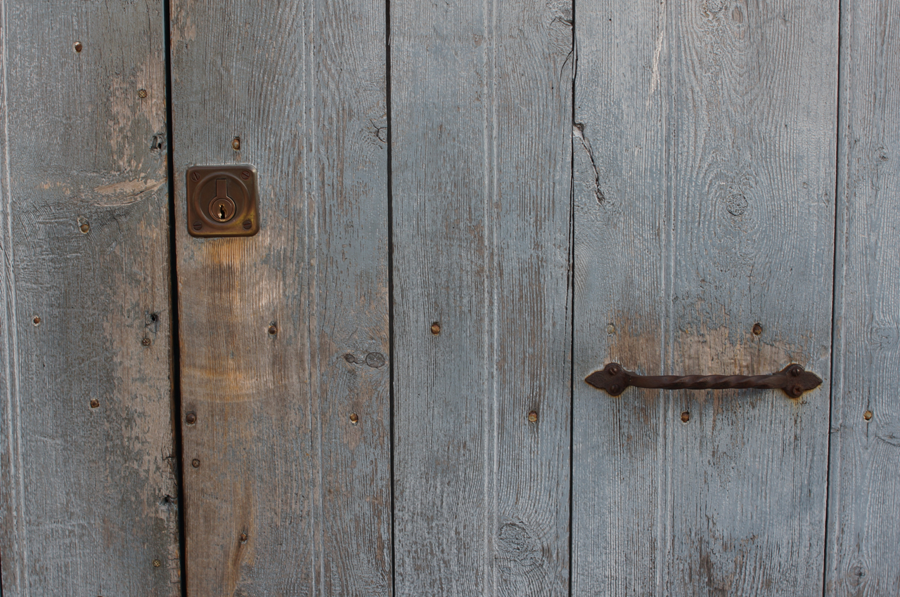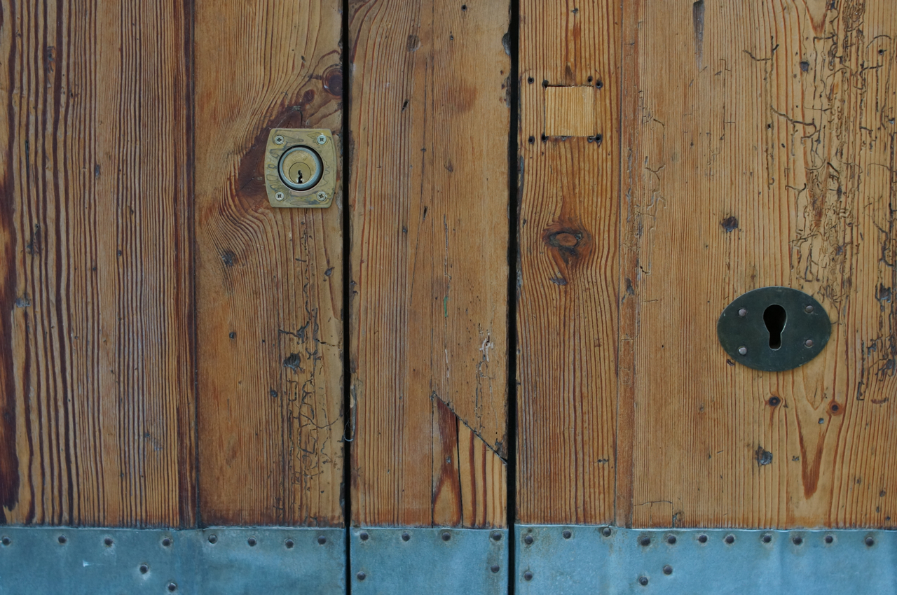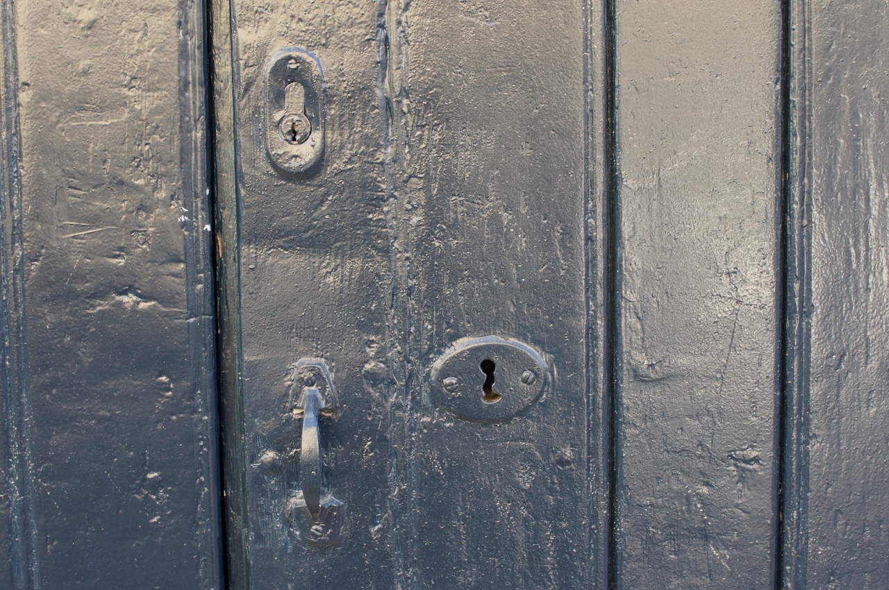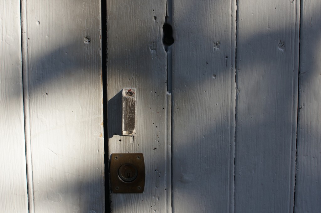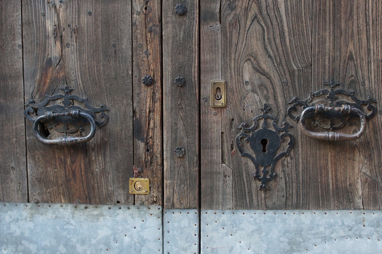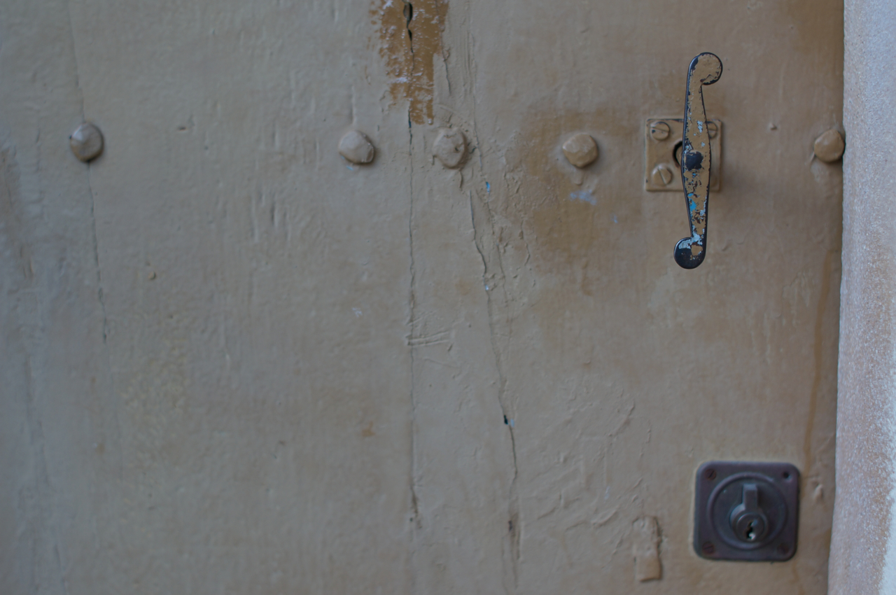 På jakt efter unika motiv i en lilla spansk turiststad upptäckte jag att alla dörrar till privata hus typiskt stod välkomnande på kläm på dagarna. Men också att alla dörrar o grindar var försett med lås som var överraskande varierande i utformningen (svensk lås = Assa lås) och bar på ett personligt avtryck efter högfrekvent användning – vackert slitage.