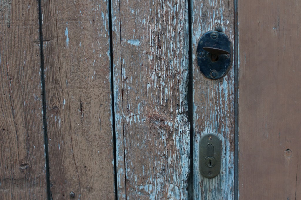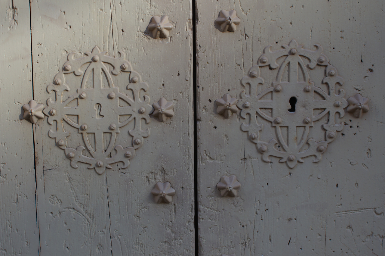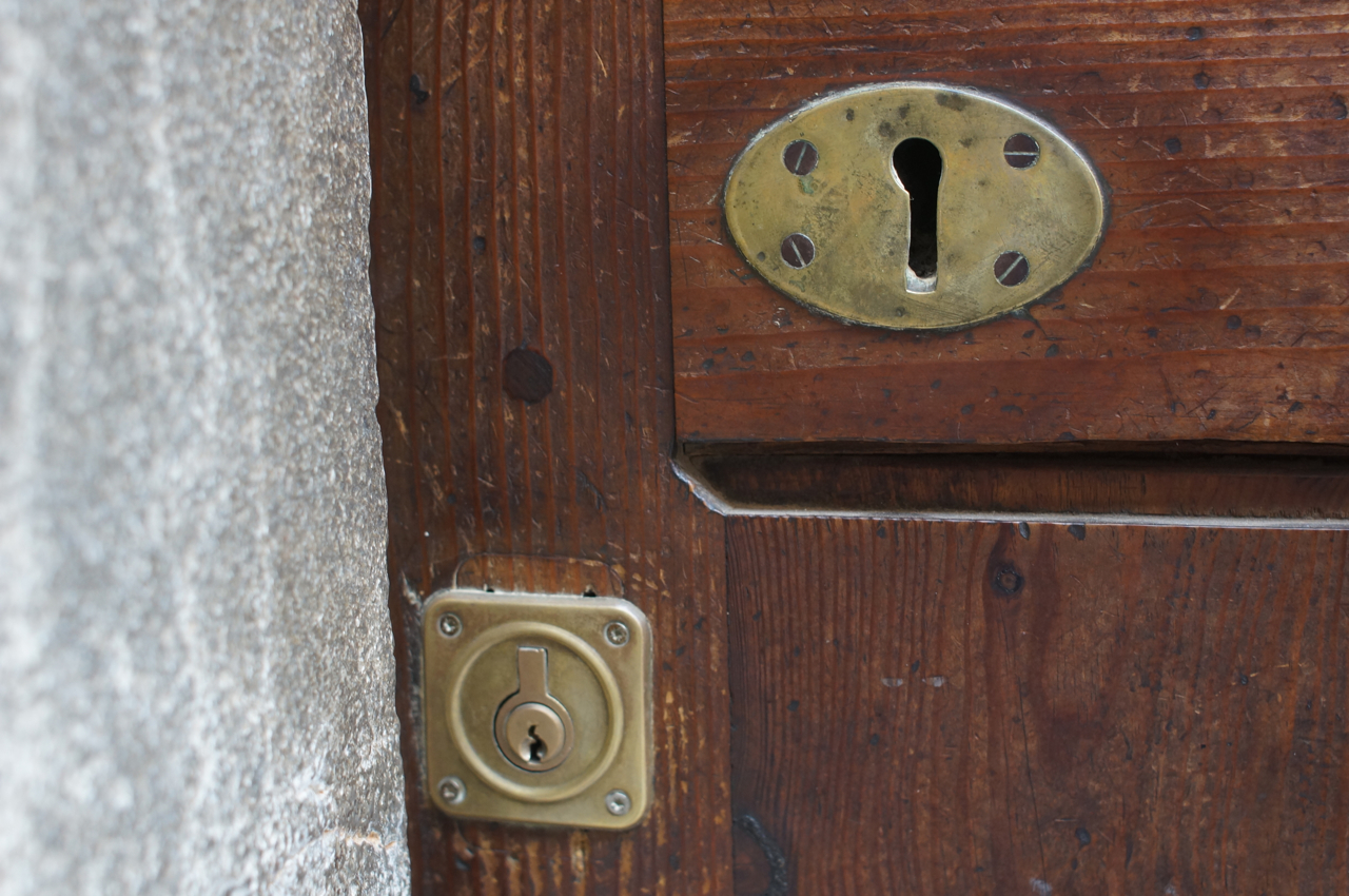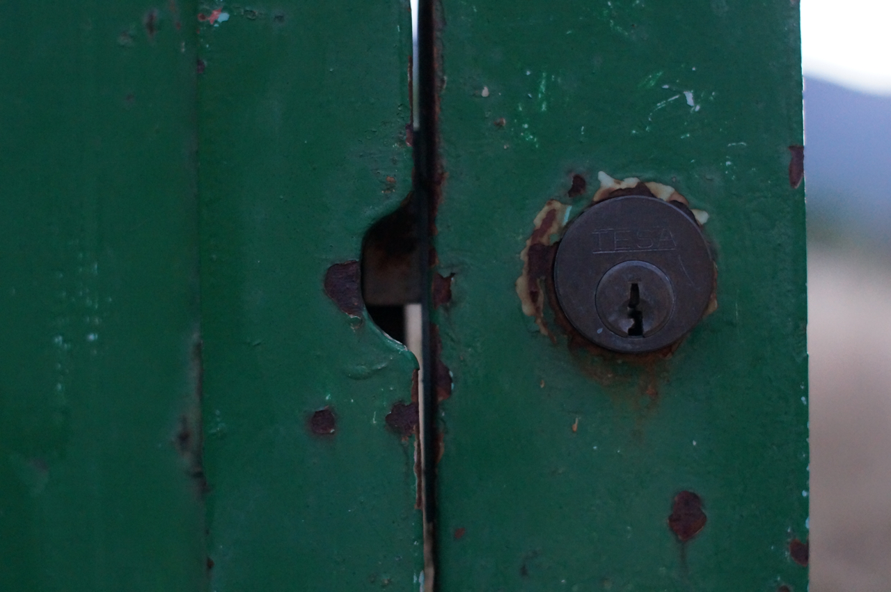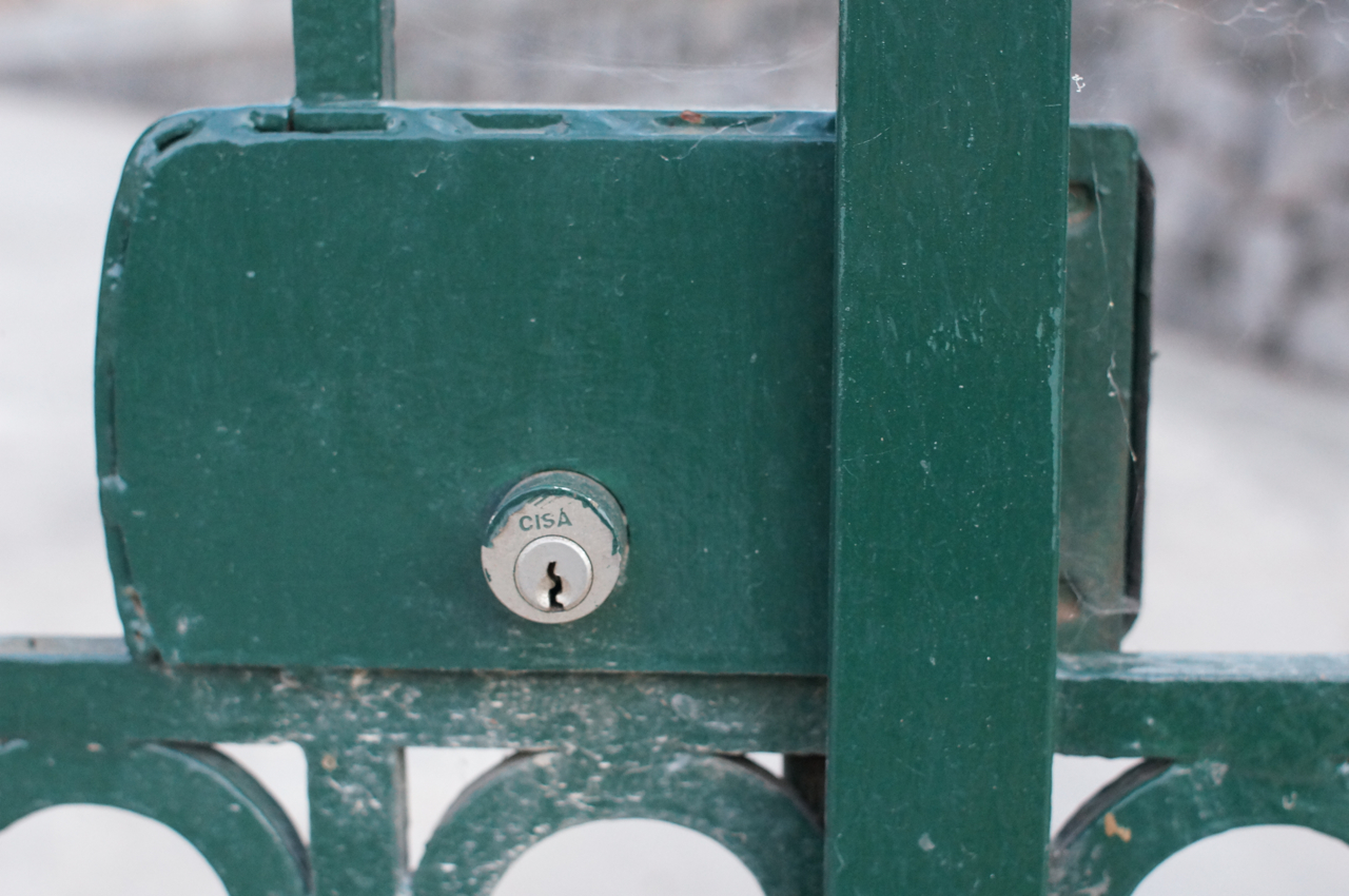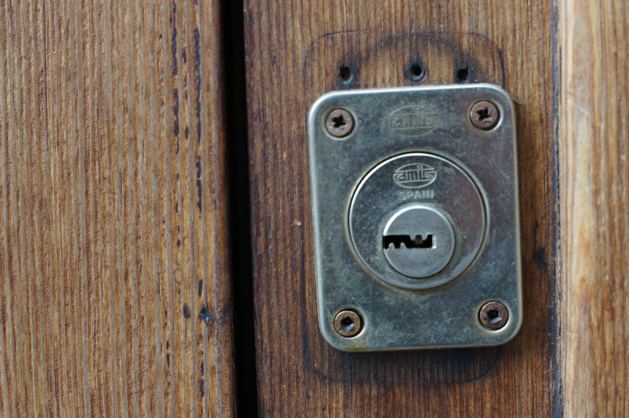 På jakt efter unika motiv i en lilla spansk turiststad upptäckte jag att alla dörrar till privata hus typiskt stod välkomnande på kläm på dagarna. Men också att alla dörrar o grindar var försett med lås som var överraskande varierande i utformningen (svensk lås = Assa lås) och bar på ett personligt avtryck efter högfrekvent användning – vackert slitage.