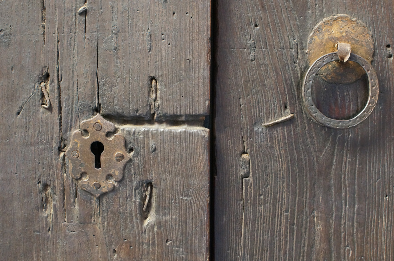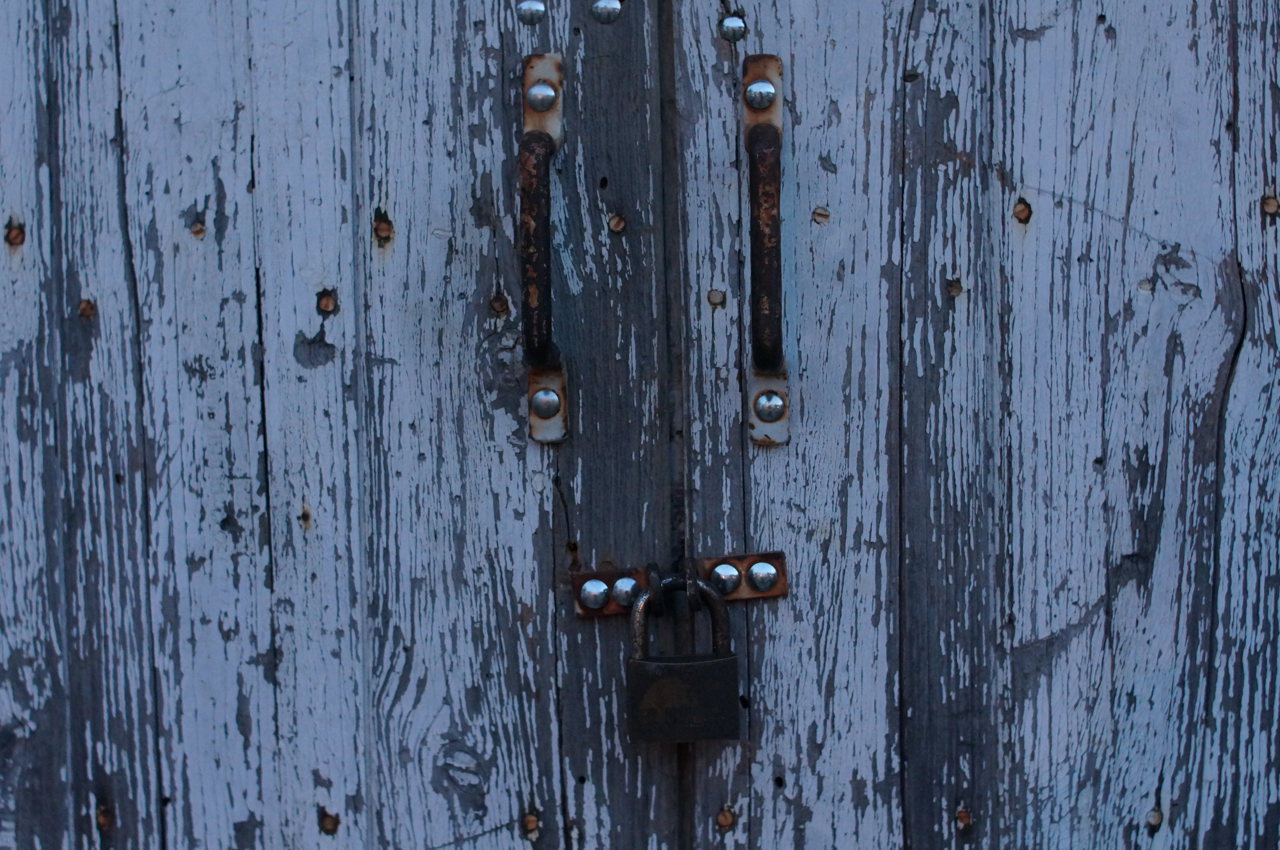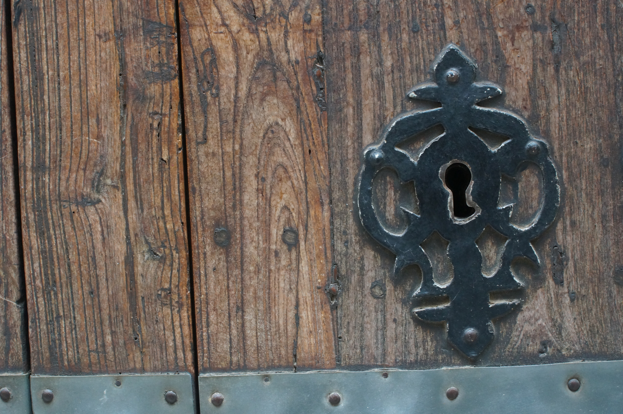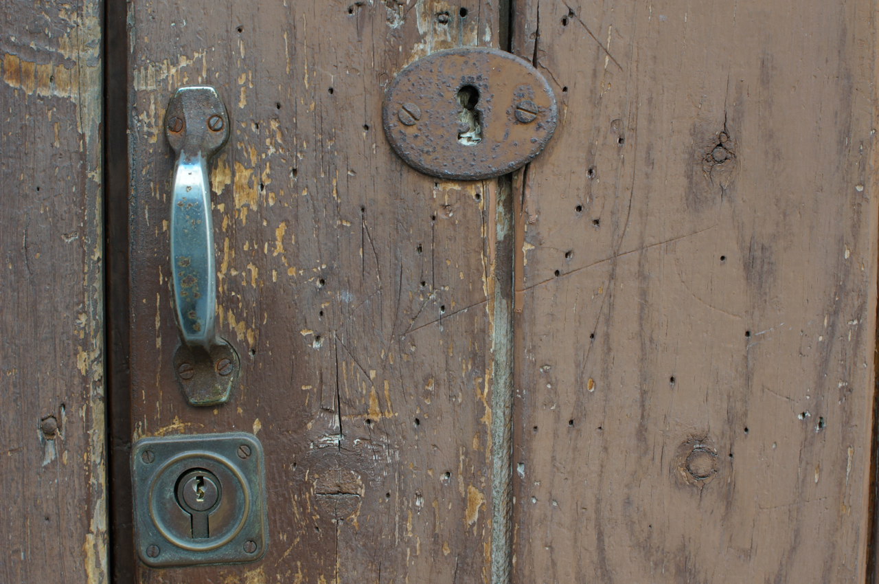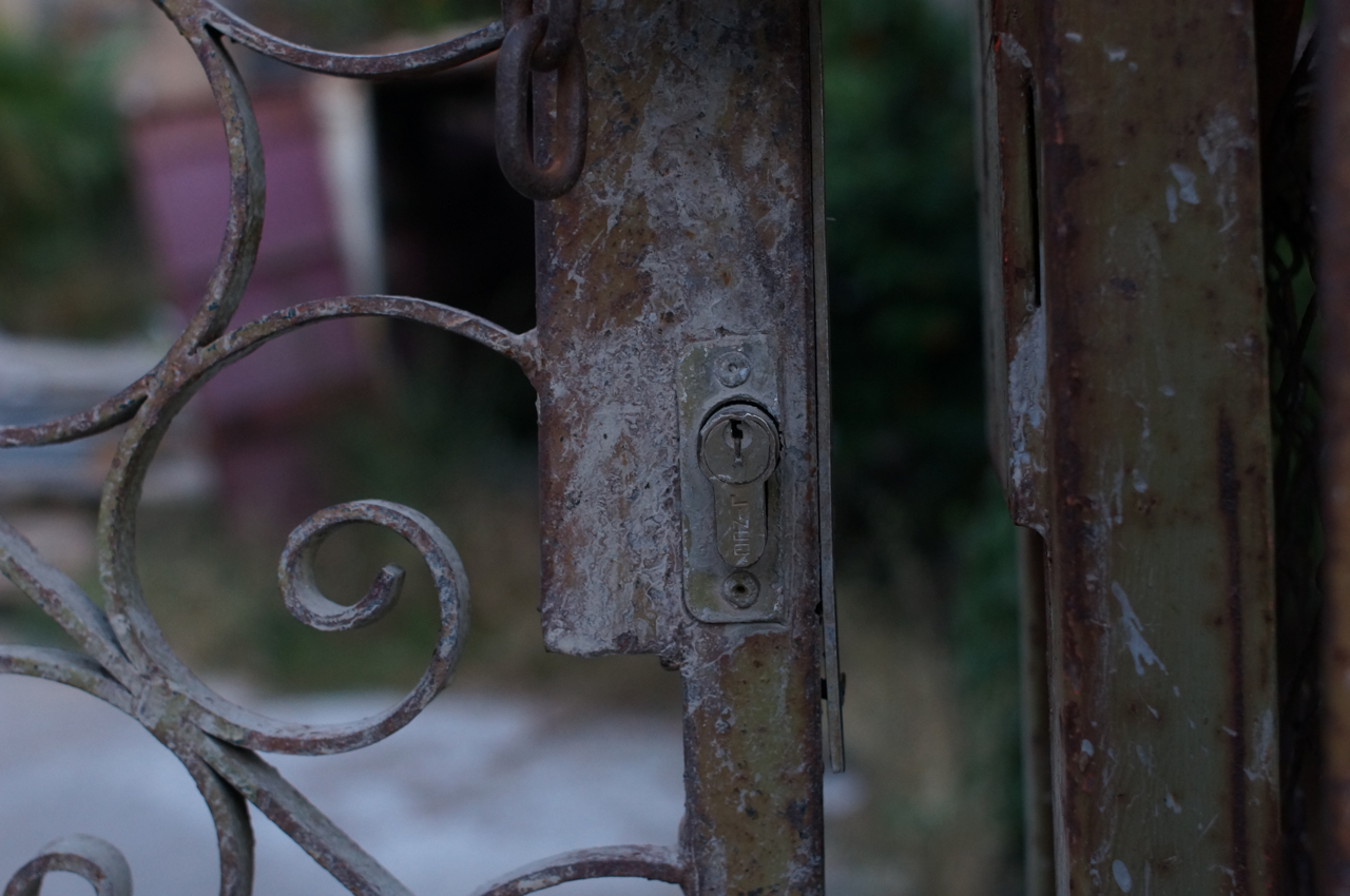 På jakt efter unika motiv i en lilla spansk turiststad upptäckte jag att alla dörrar till privata hus typiskt stod välkomnande på kläm på dagarna. Men också att alla dörrar o grindar var försett med lås som var överraskande varierande i utformningen (svensk lås = Assa lås) och bar på ett personligt avtryck efter högfrekvent användning – vackert slitage.