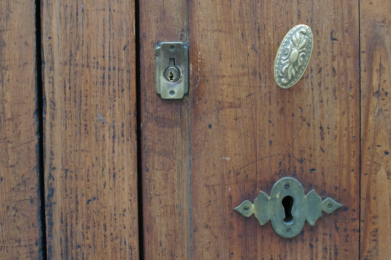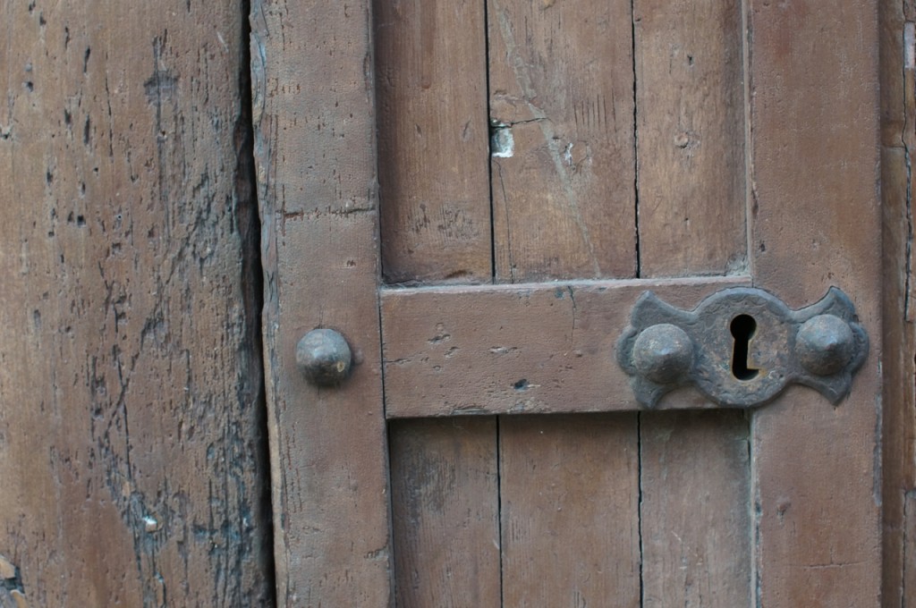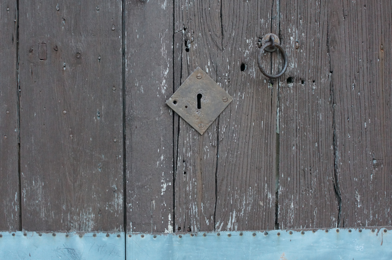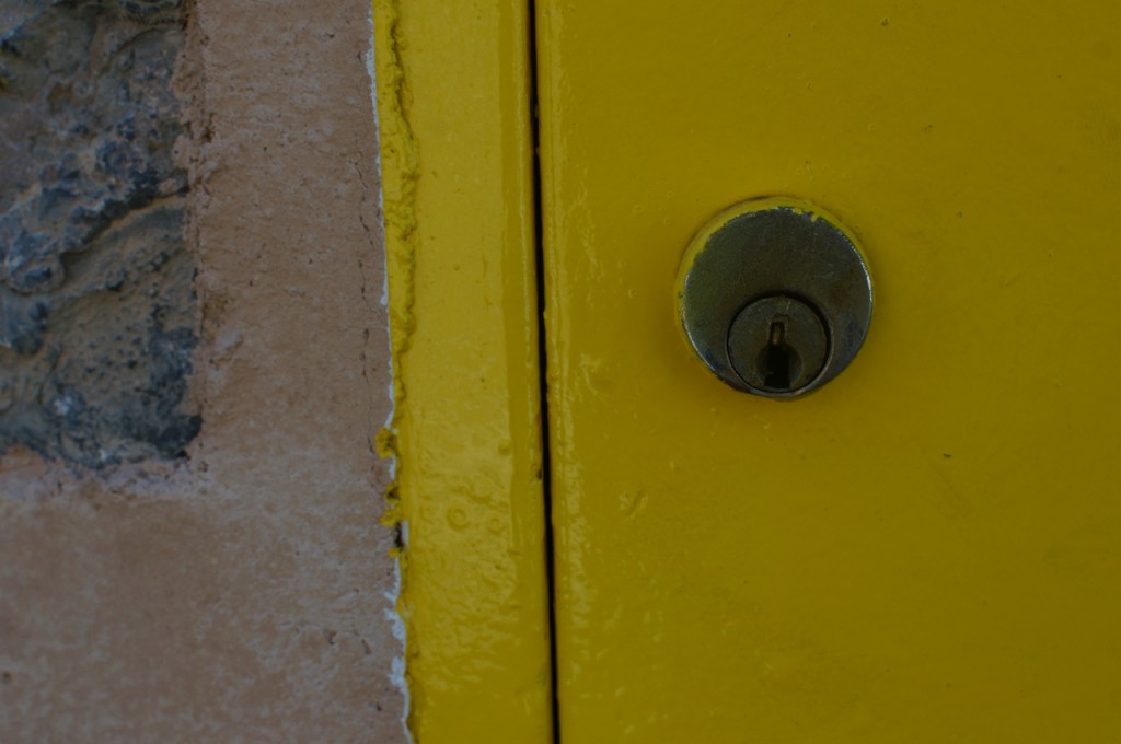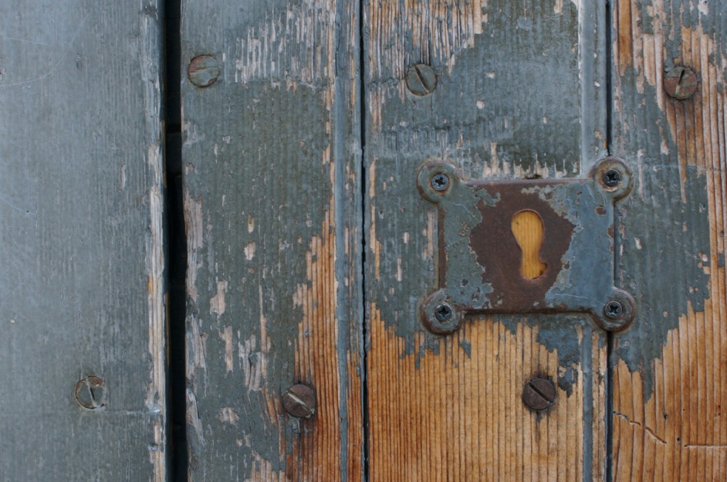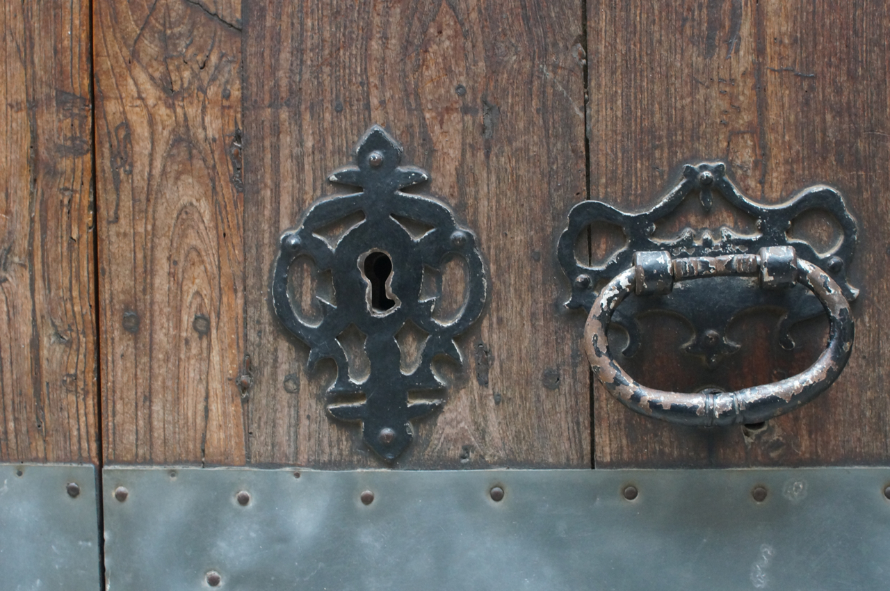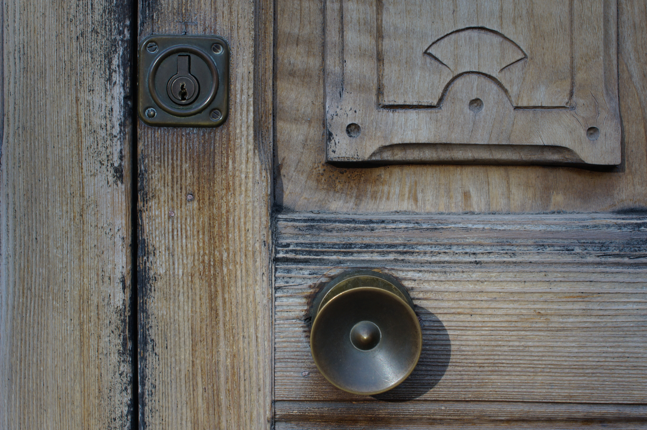 På jakt efter unika motiv i en lilla spansk turiststad upptäckte jag att alla dörrar till privata hus typiskt stod välkomnande på kläm på dagarna. Men också att alla dörrar o grindar var försett med lås som var överraskande varierande i utformningen (svensk lås = Assa lås) och bar på ett personligt avtryck efter högfrekvent användning – vackert slitage.