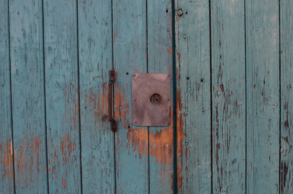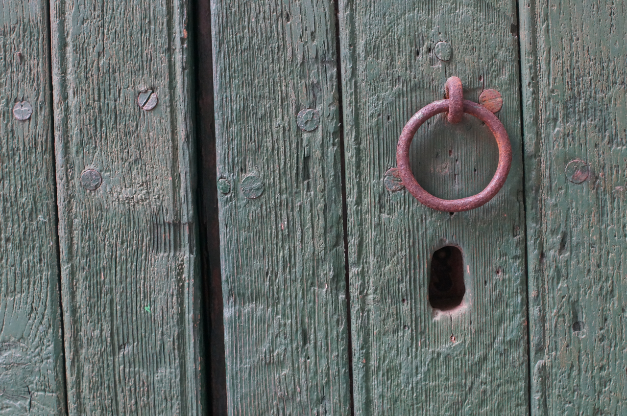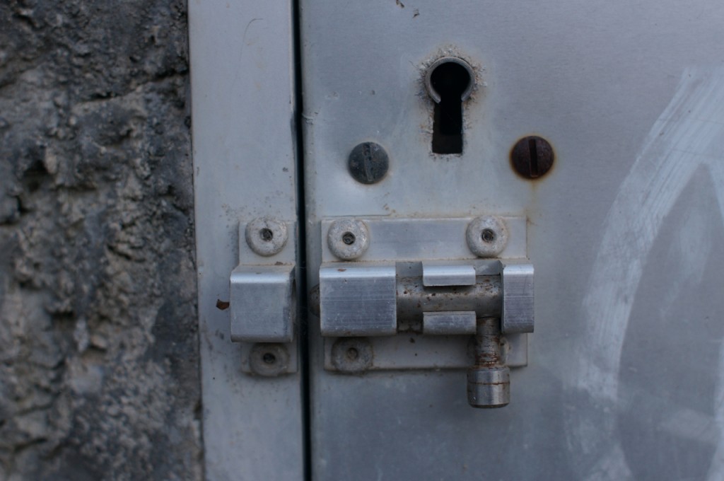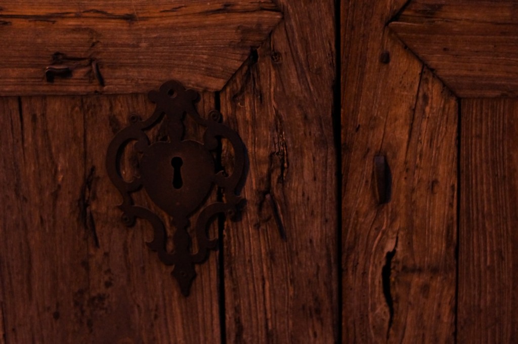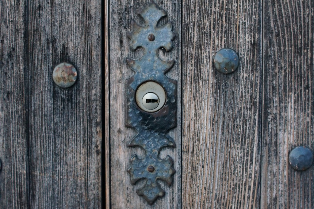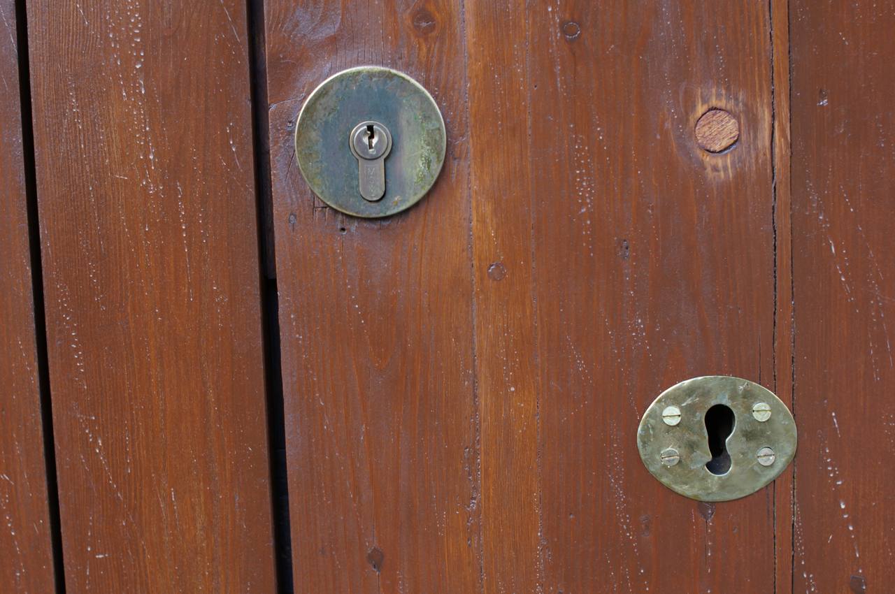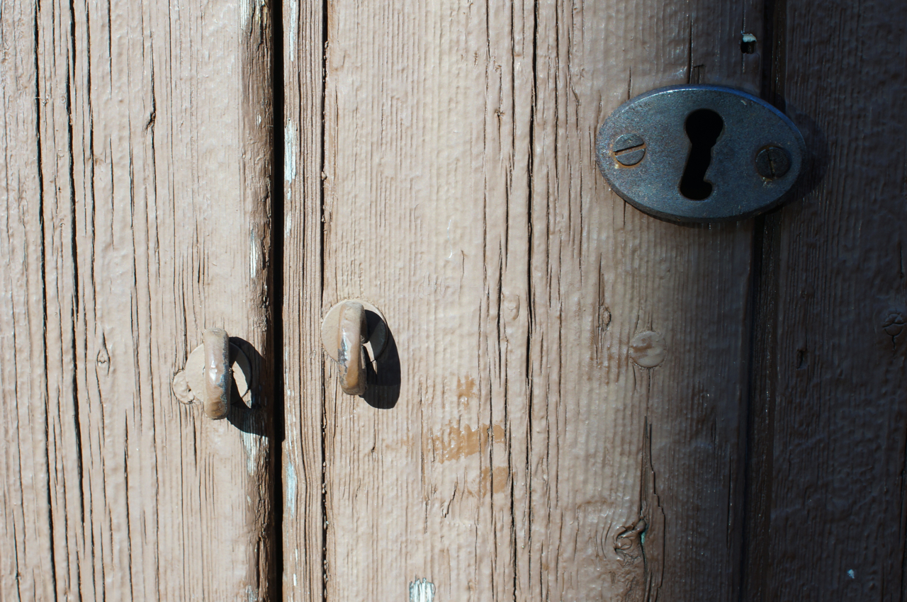 På jakt efter unika motiv i en lilla spansk turiststad upptäckte jag att alla dörrar till privata hus typiskt stod välkomnande på kläm på dagarna. Men också att alla dörrar o grindar var försett med lås som var överraskande varierande i utformningen (svensk lås = Assa lås) och bar på ett personligt avtryck efter högfrekvent användning – vackert slitage.