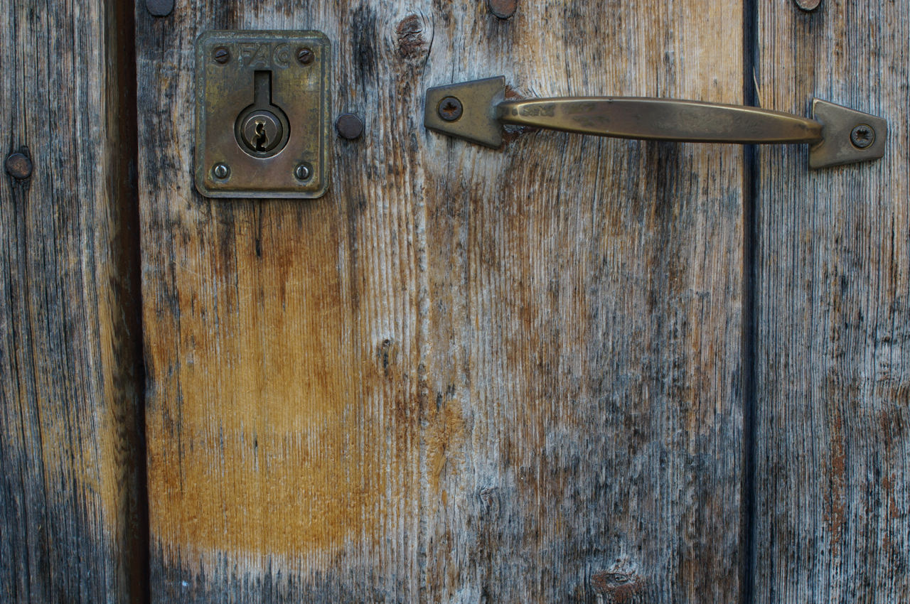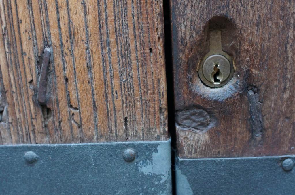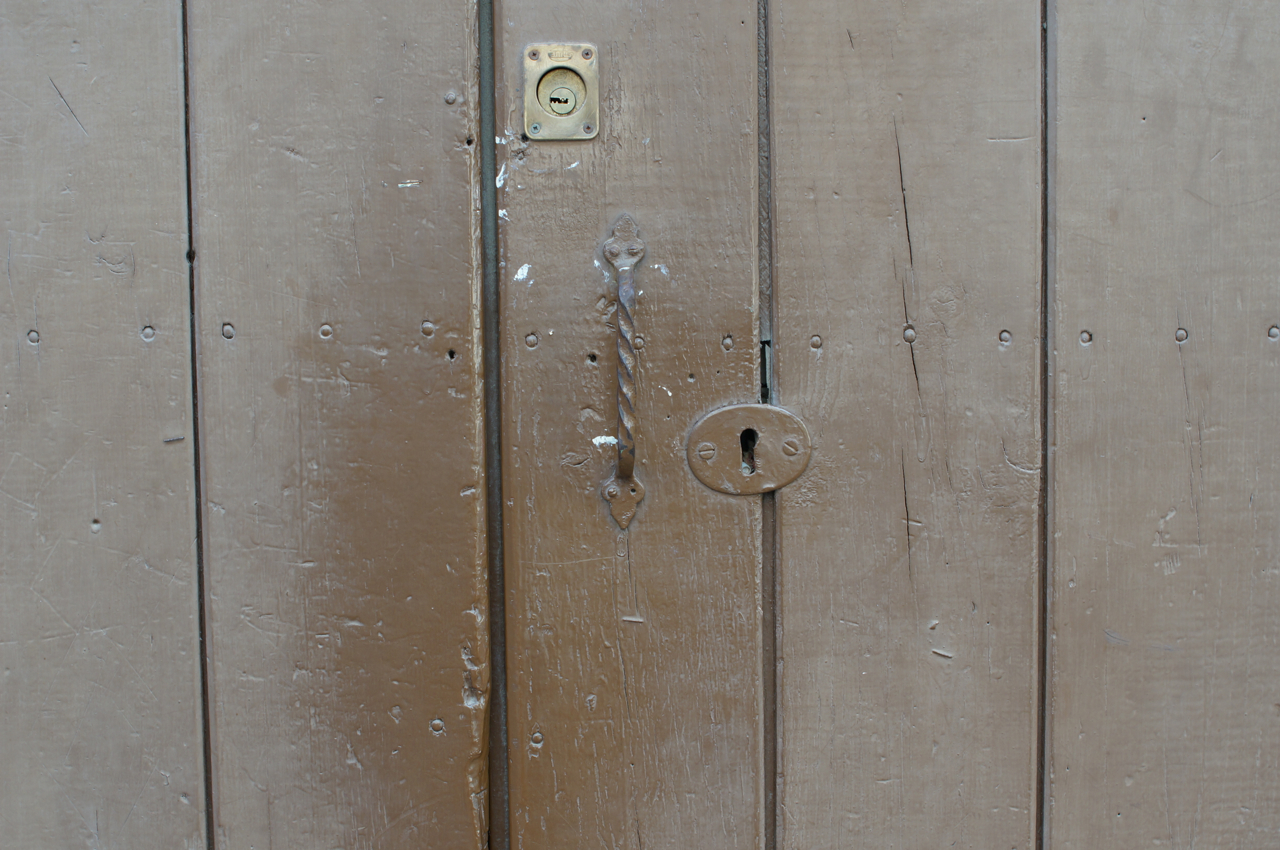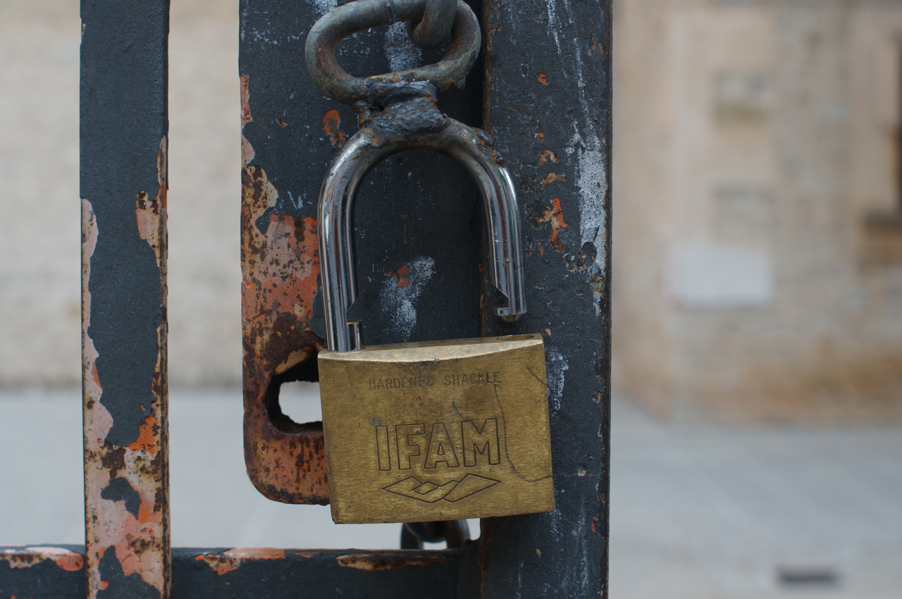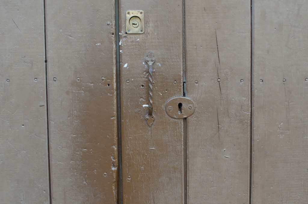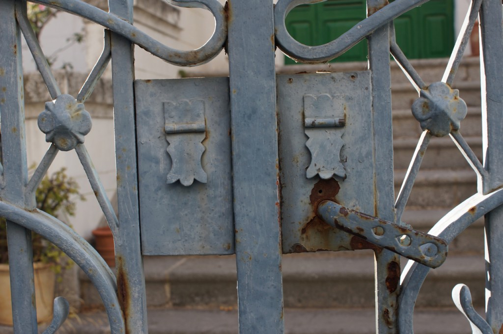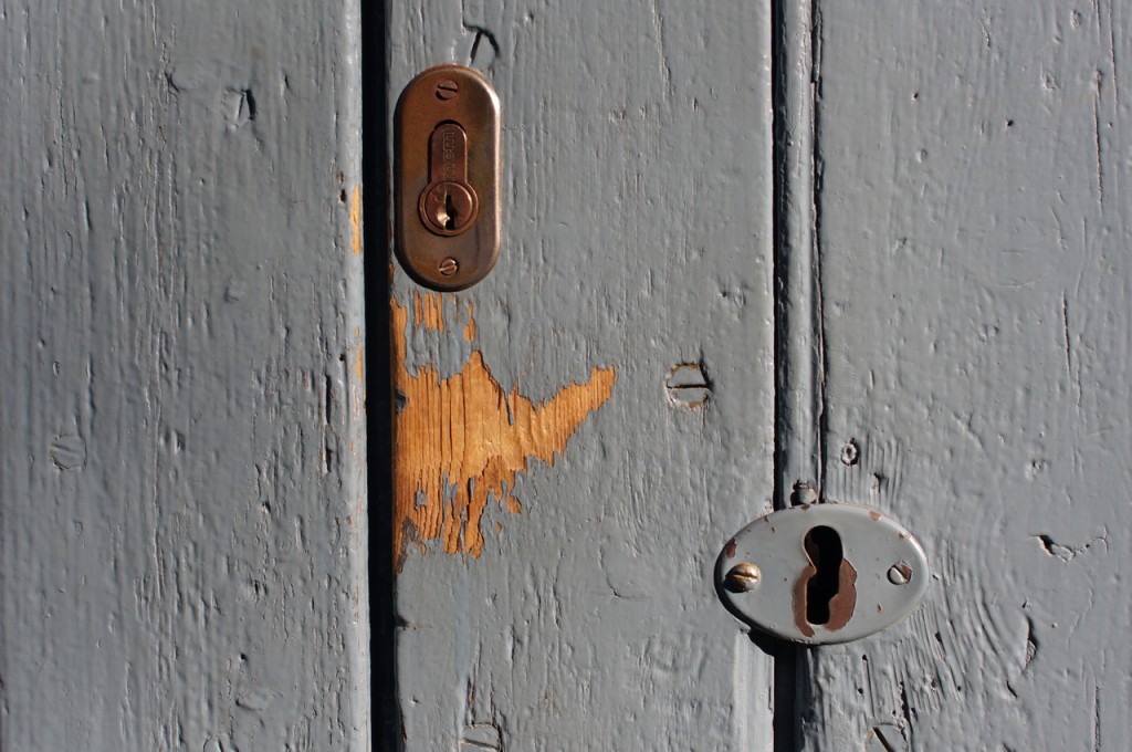 På jakt efter unika motiv i en lilla spansk turiststad upptäckte jag att alla dörrar till privata hus typiskt stod välkomnande på kläm på dagarna. Men också att alla dörrar o grindar var försett med lås som var överraskande varierande i utformningen (svensk lås = Assa lås) och bar på ett personligt avtryck efter högfrekvent användning – vackert slitage.