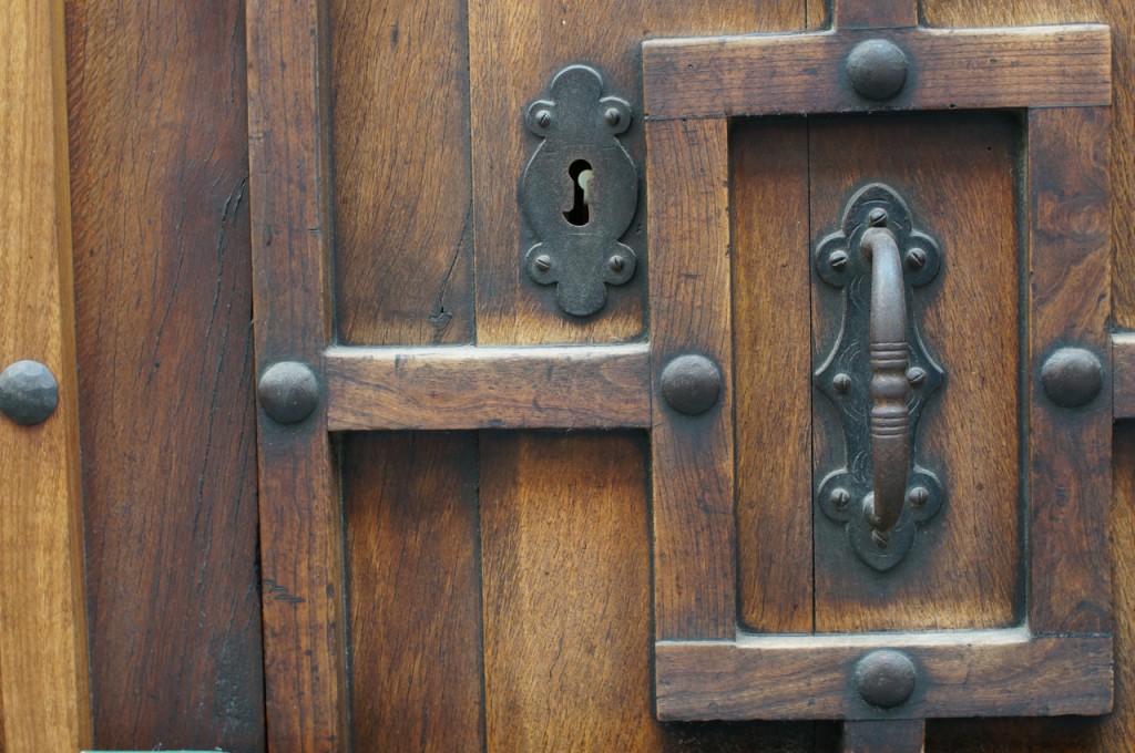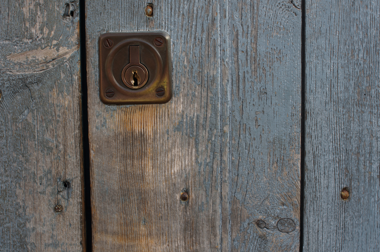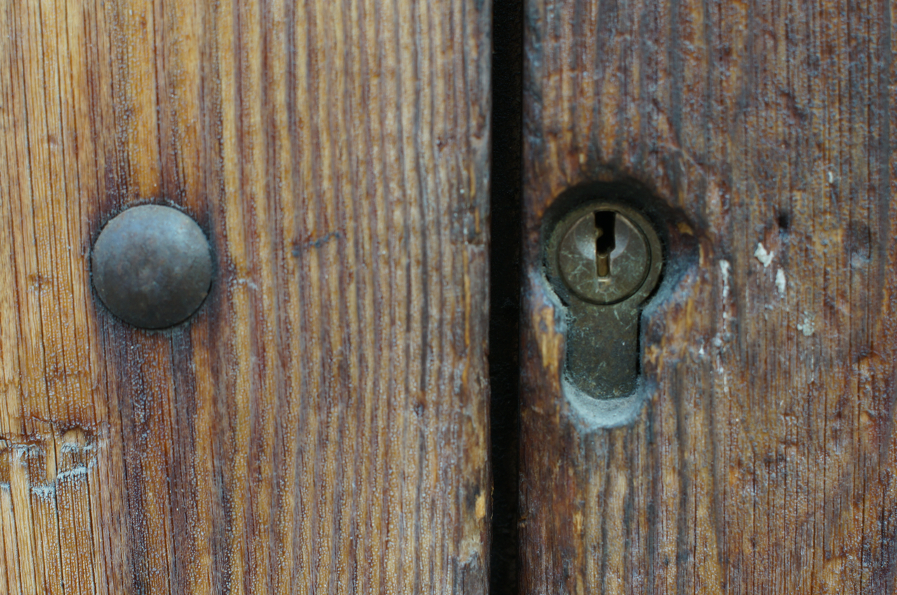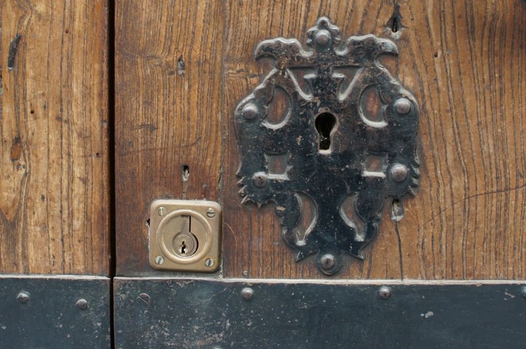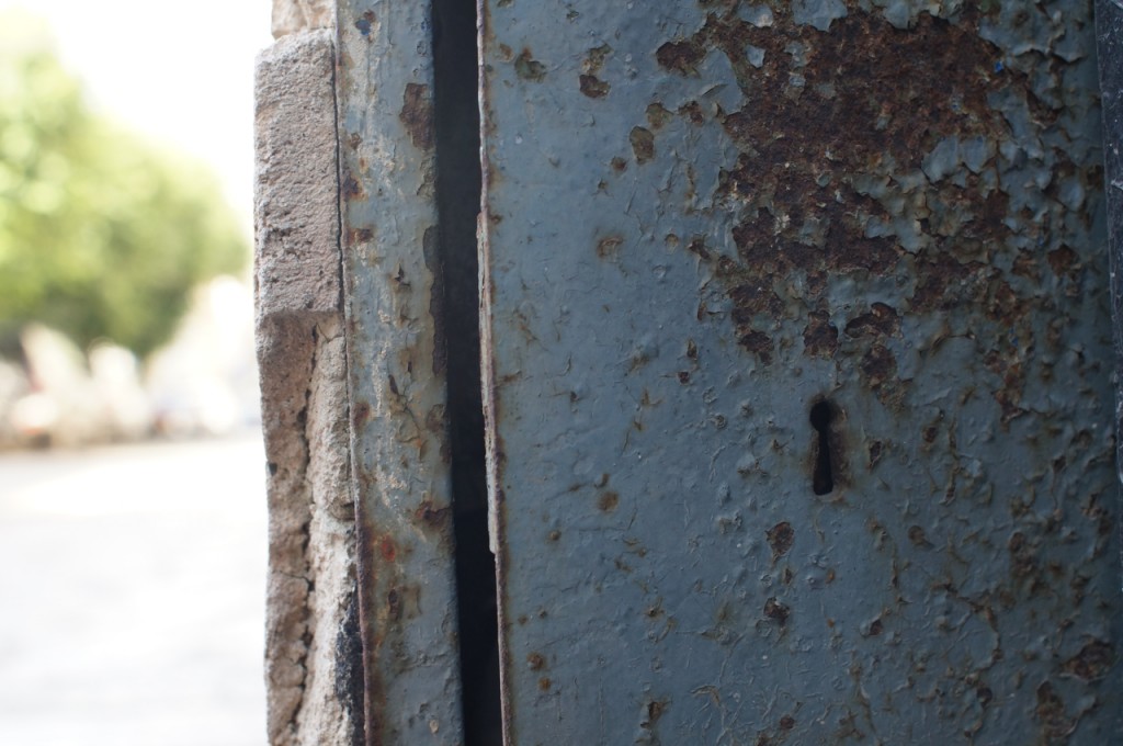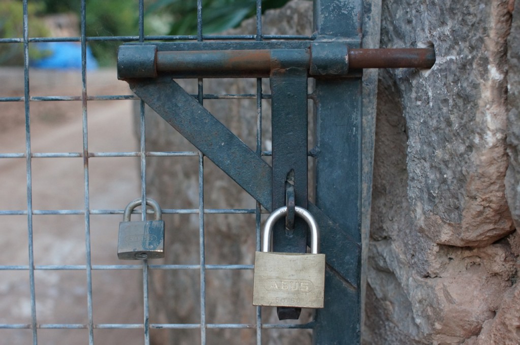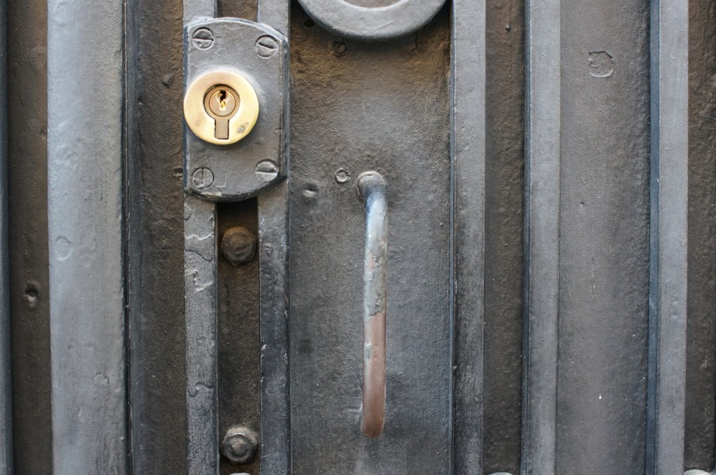 På jakt efter unika motiv i en lilla spansk turiststad upptäckte jag att alla dörrar till privata hus typiskt stod välkomnande på kläm på dagarna. Men också att alla dörrar o grindar var försett med lås som var överraskande varierande i utformningen (svensk lås = Assa lås) och bar på ett personligt avtryck efter högfrekvent användning – vackert slitage.