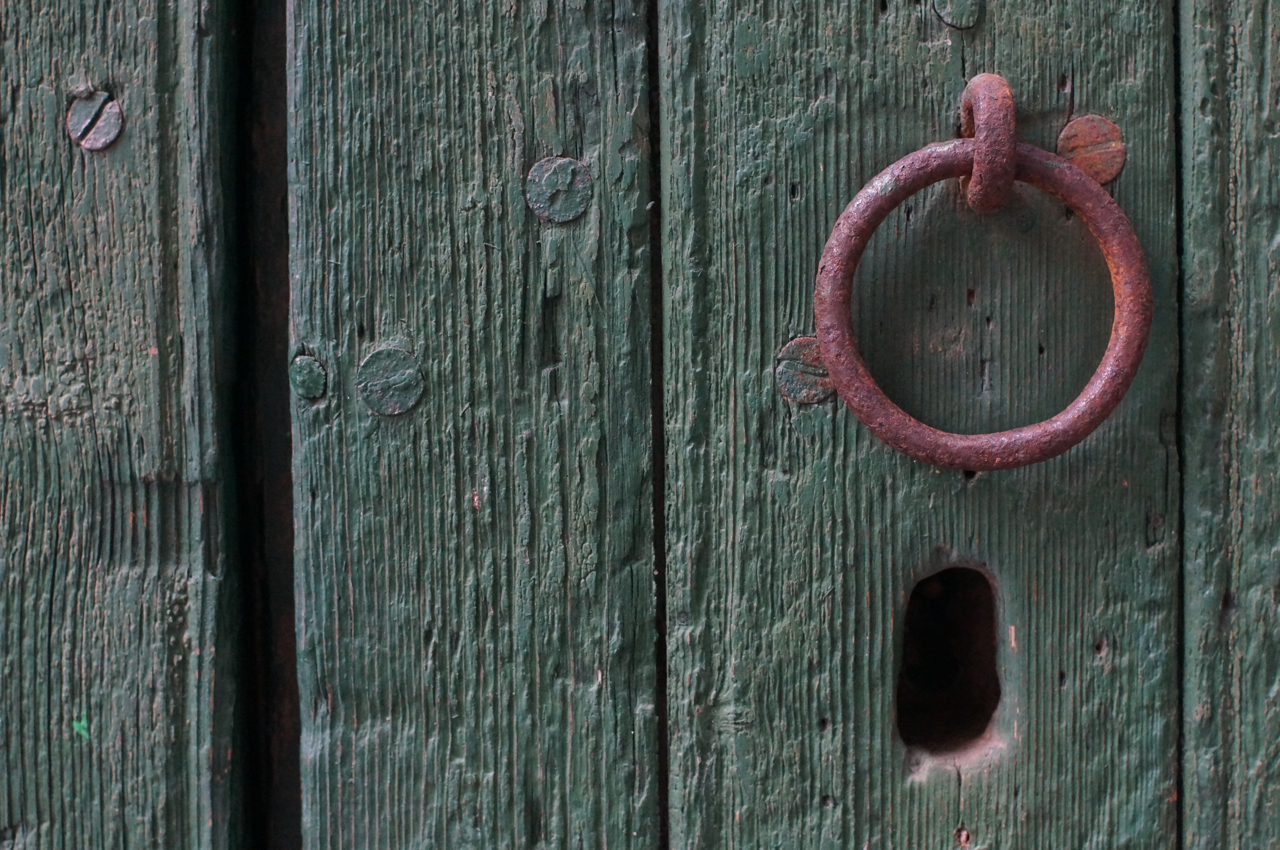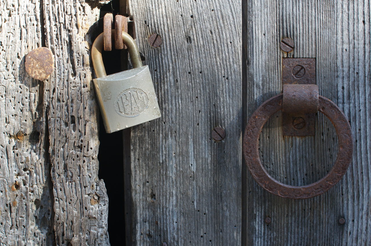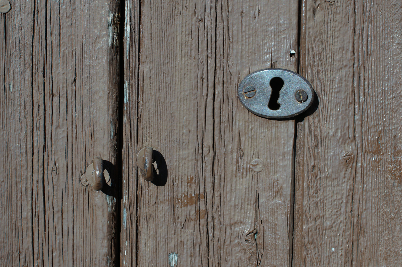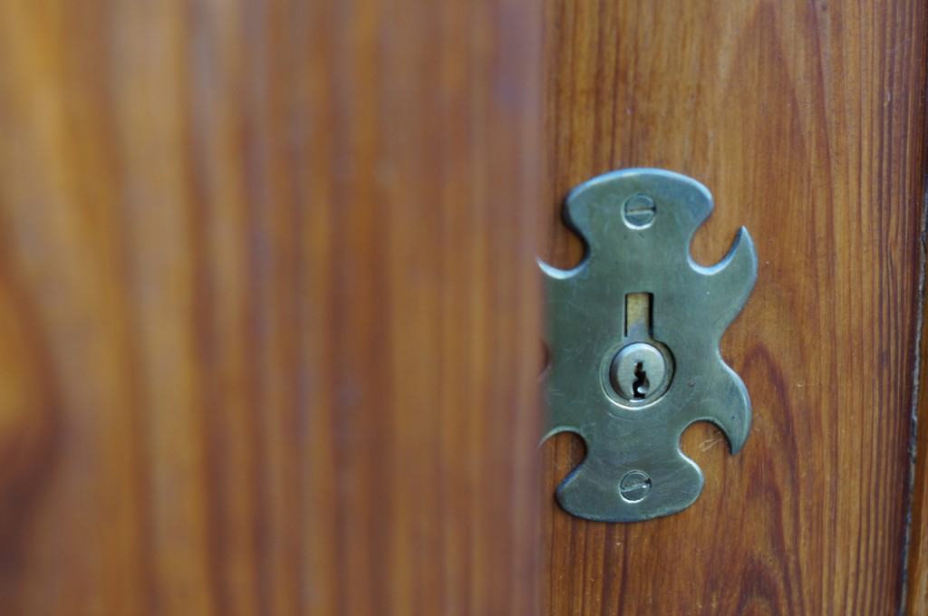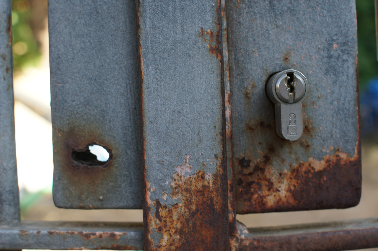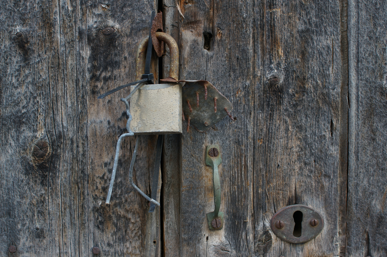 På jakt efter unika motiv i en lilla spansk turiststad upptäckte jag att alla dörrar till privata hus typiskt stod välkomnande på kläm på dagarna. Men också att alla dörrar o grindar var försett med lås som var överraskande varierande i utformningen (svensk lås = Assa lås) och bar på ett personligt avtryck efter högfrekvent användning – vackert slitage.