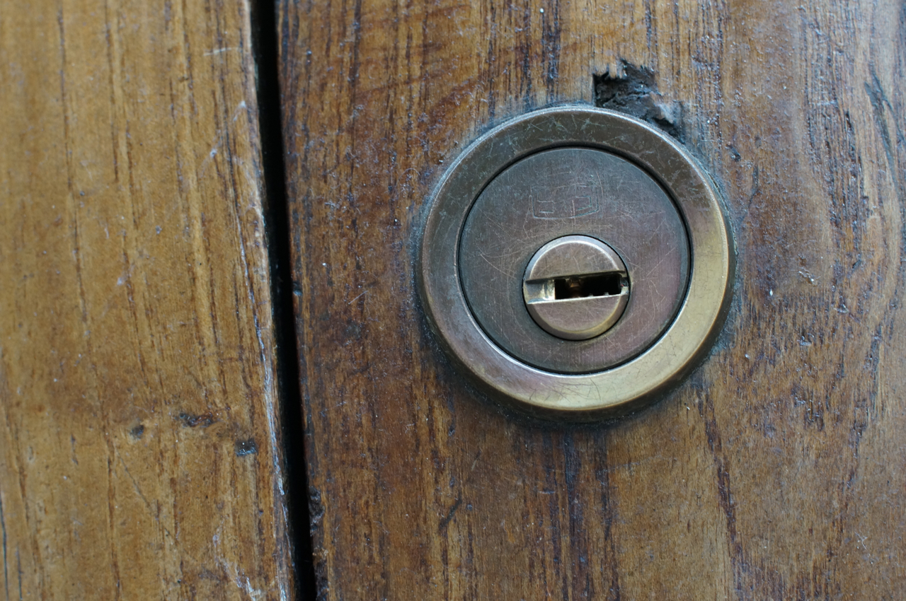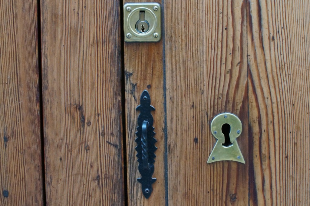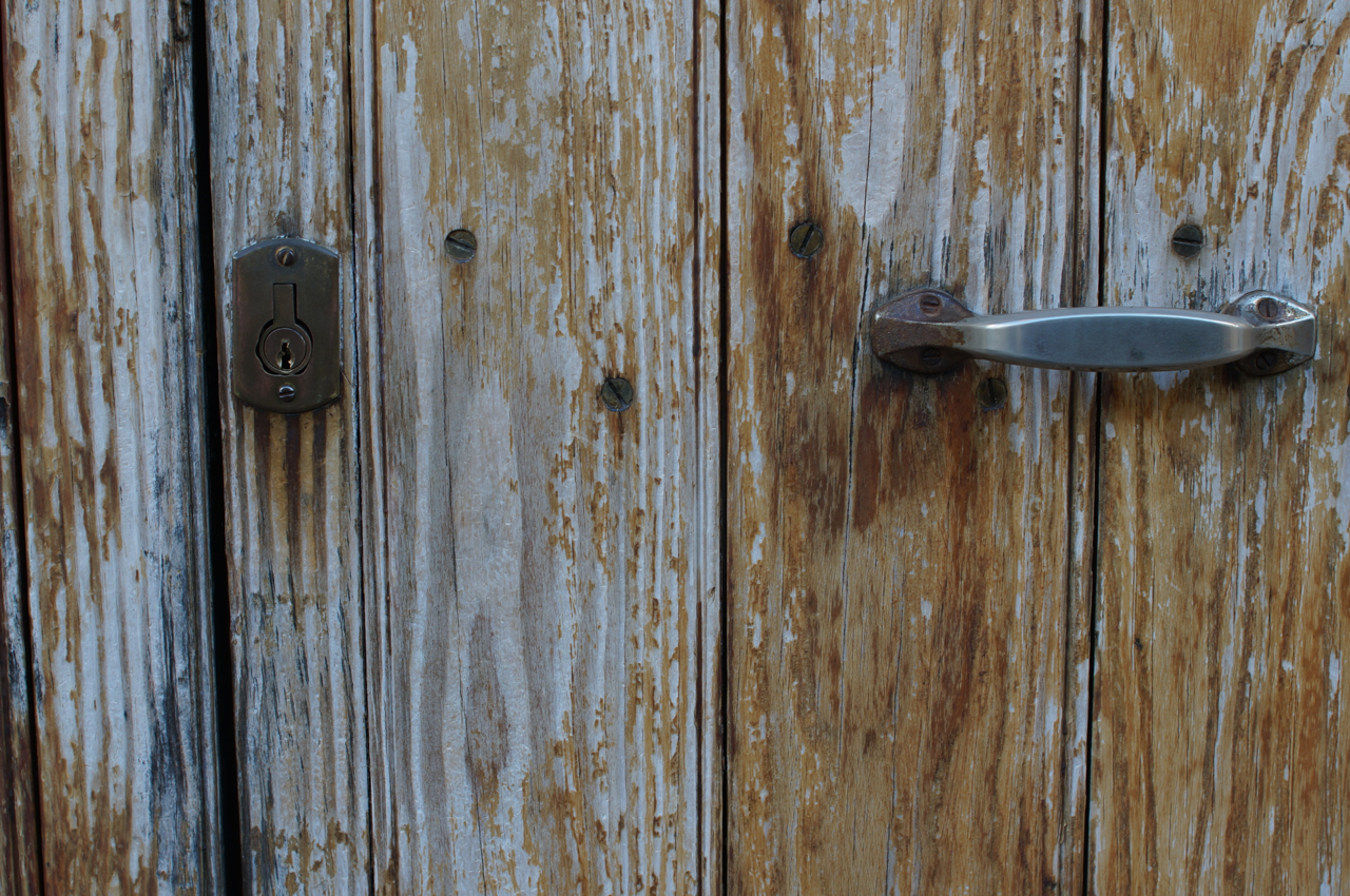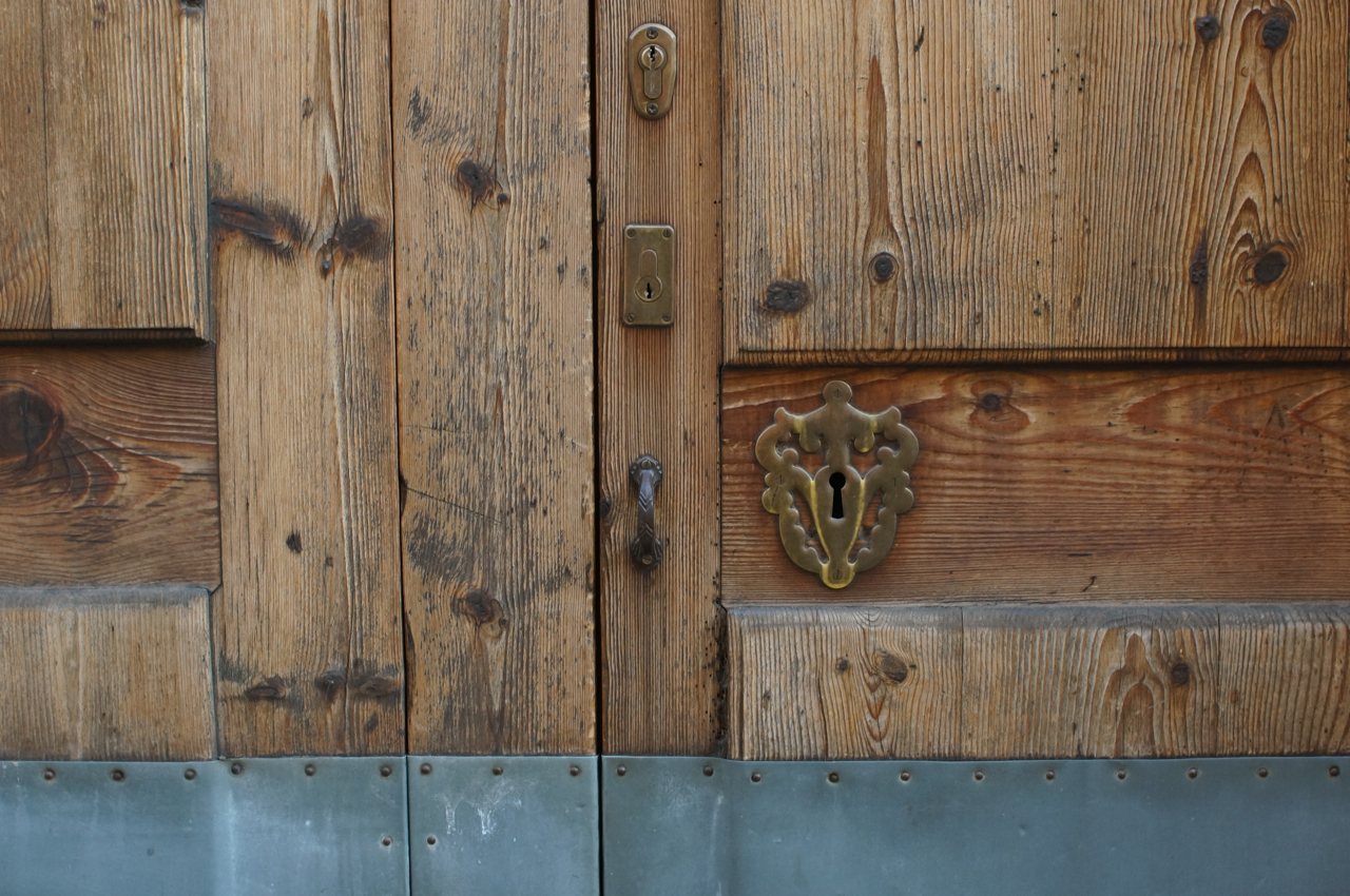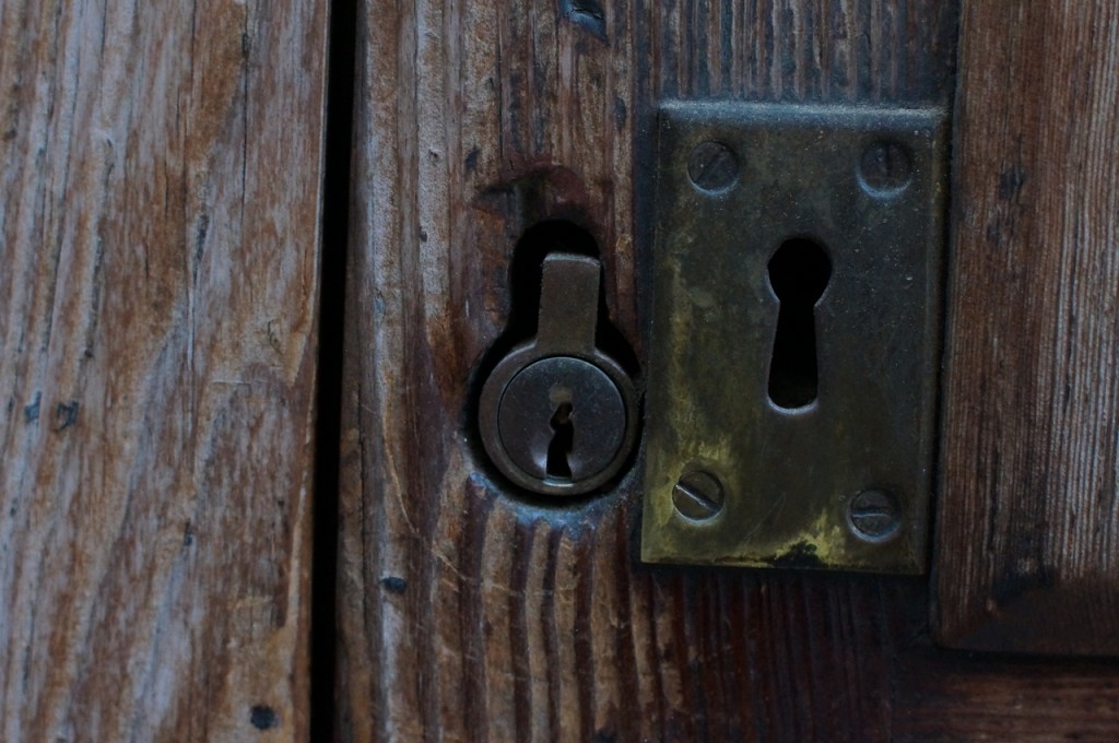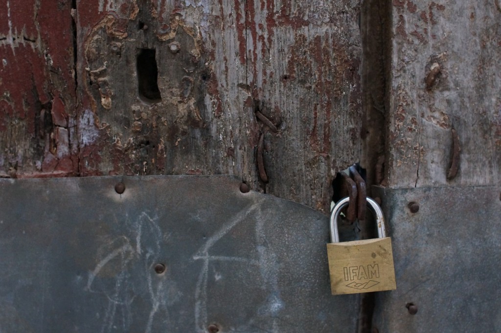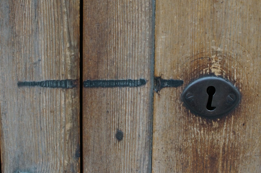 På jakt efter unika motiv i en lilla spansk turiststad upptäckte jag att alla dörrar till privata hus typiskt stod välkomnande på kläm på dagarna. Men också att alla dörrar o grindar var försett med lås som var överraskande varierande i utformningen (svensk lås = Assa lås) och bar på ett personligt avtryck efter högfrekvent användning – vackert slitage.