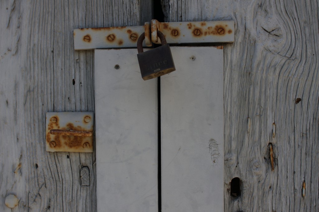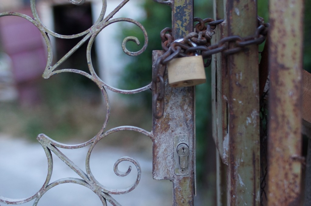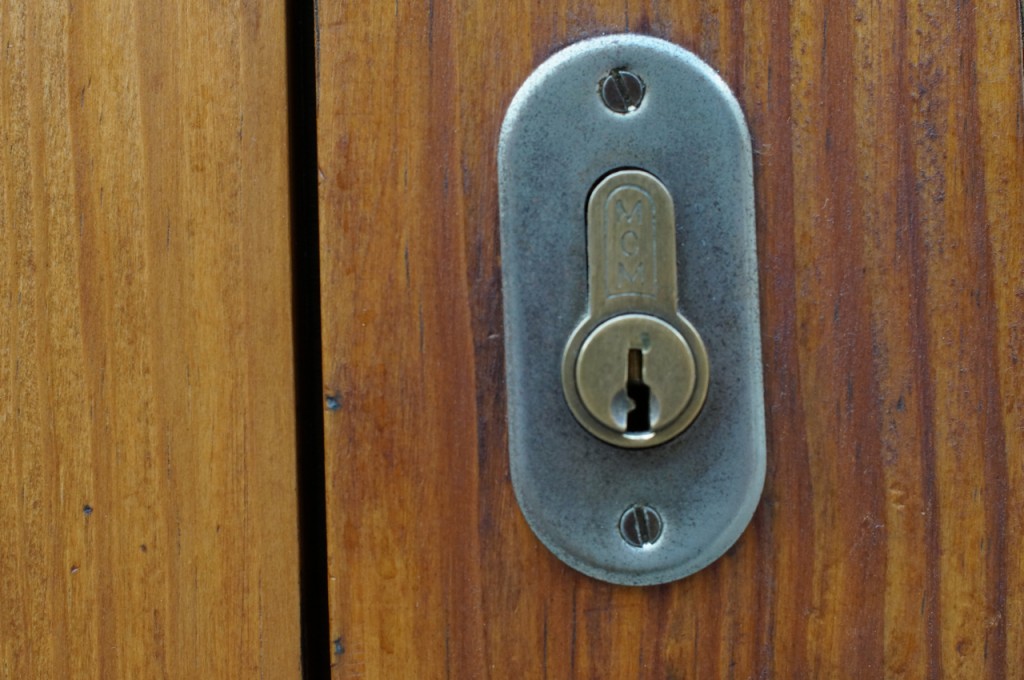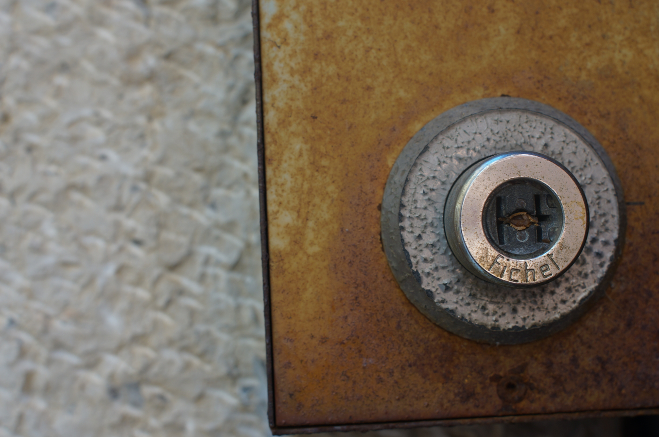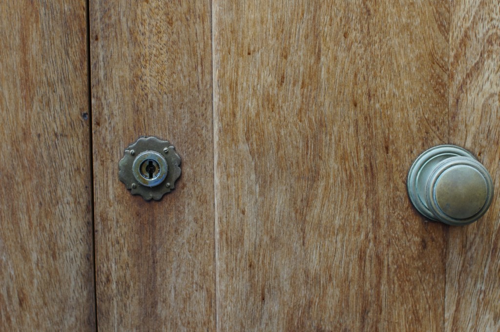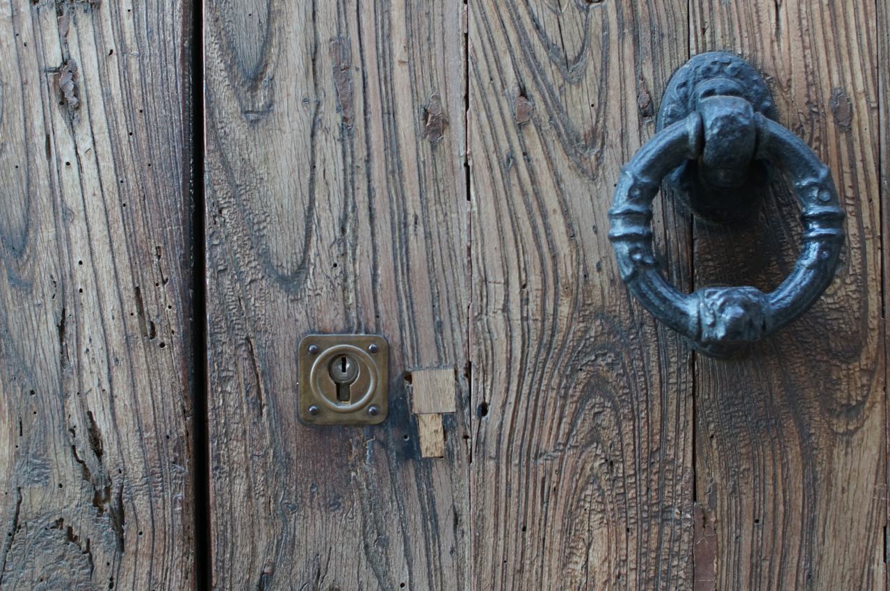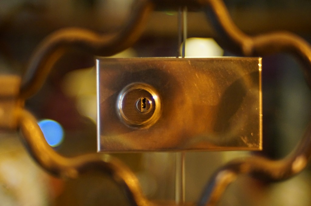 På jakt efter unika motiv i en lilla spansk turiststad upptäckte jag att alla dörrar till privata hus typiskt stod välkomnande på kläm på dagarna. Men också att alla dörrar o grindar var försett med lås som var överraskande varierande i utformningen (svensk lås = Assa lås) och bar på ett personligt avtryck efter högfrekvent användning – vackert slitage.