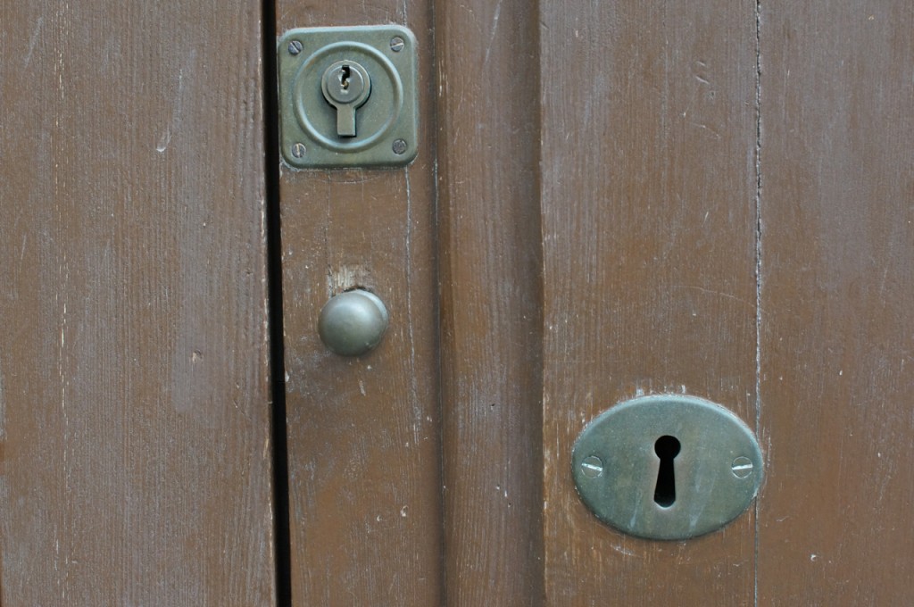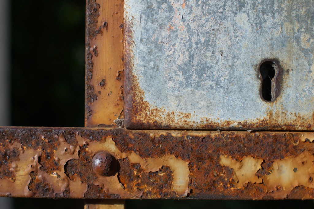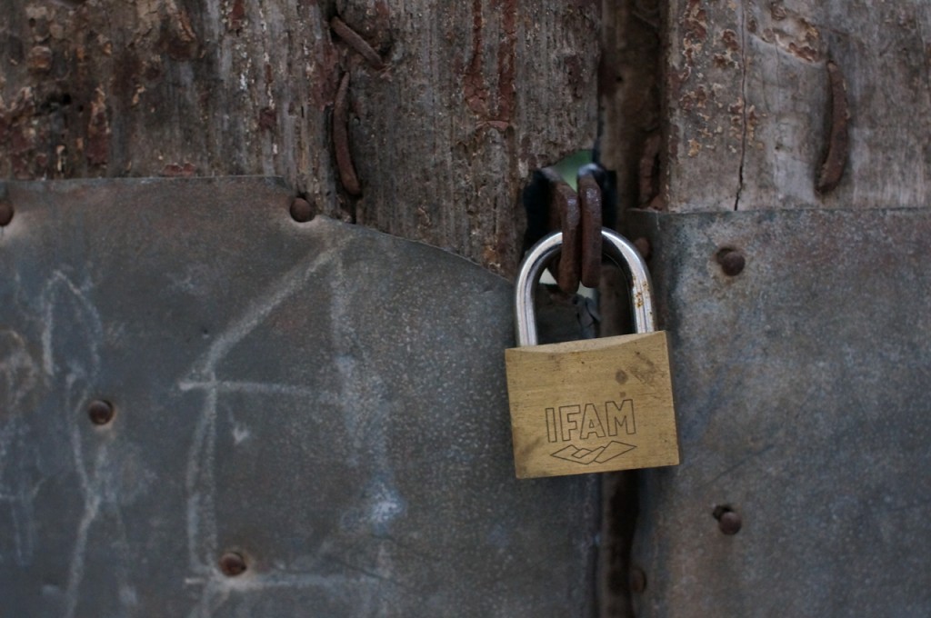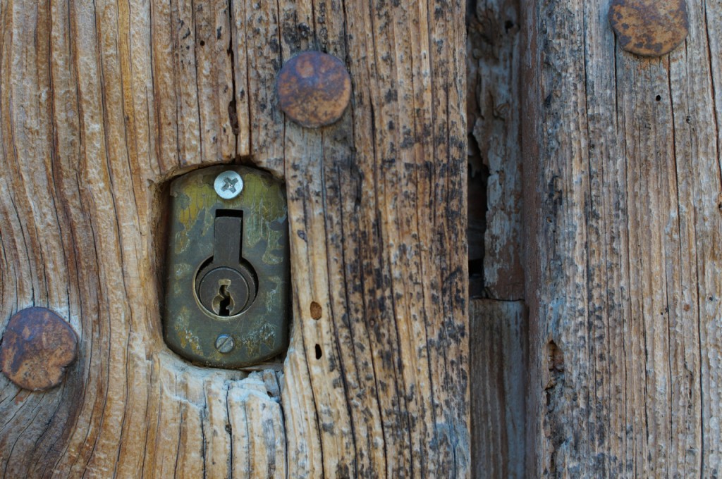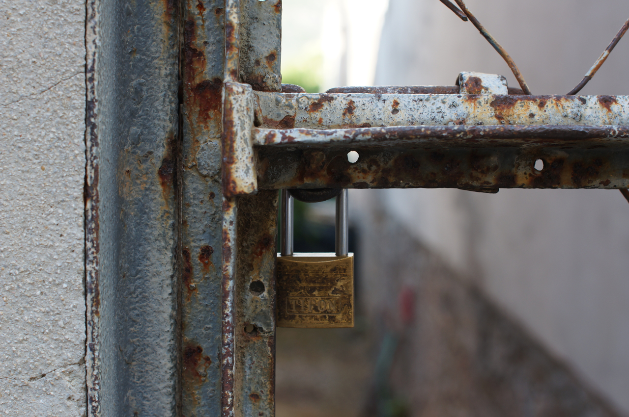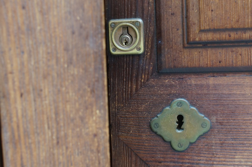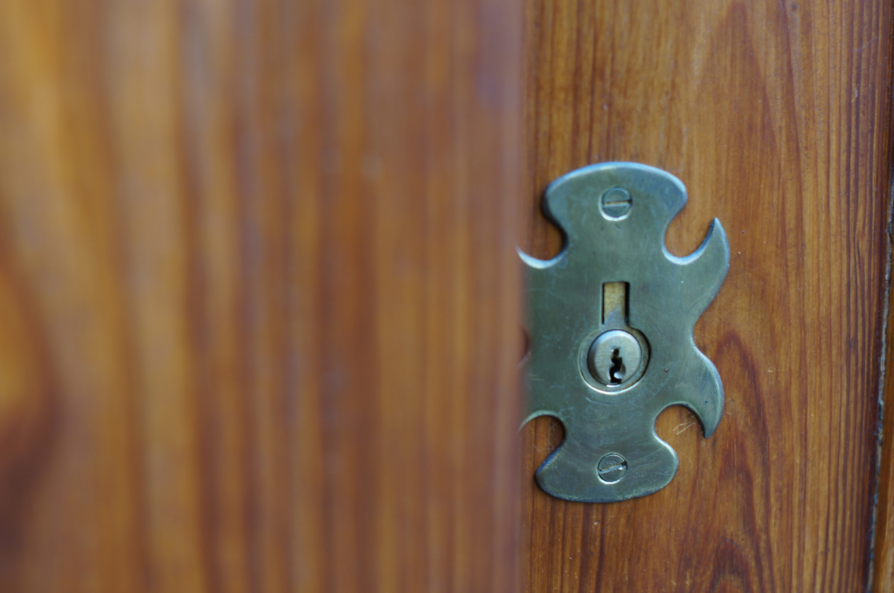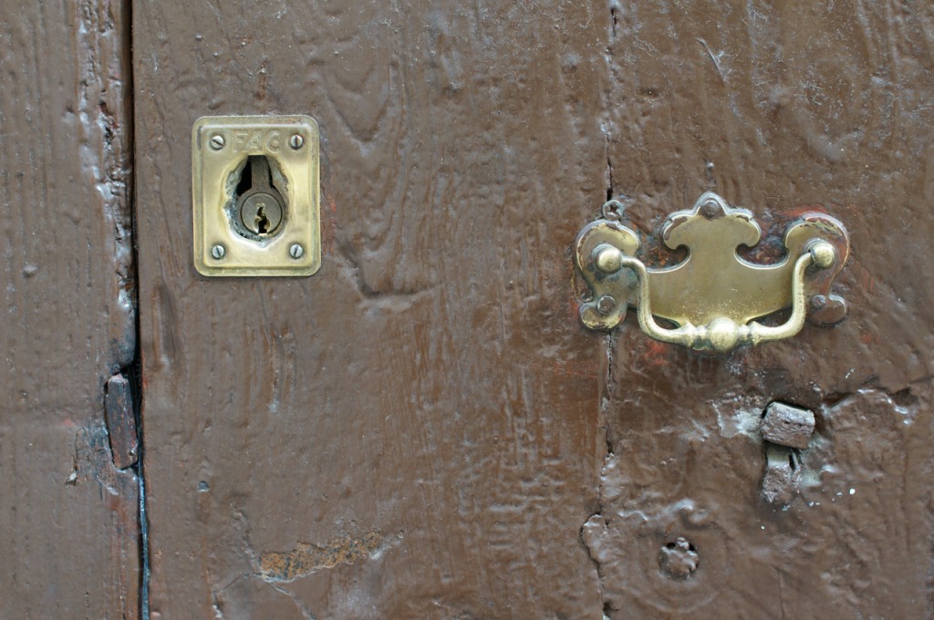 På jakt efter unika motiv i en lilla spansk turiststad upptäckte jag att alla dörrar till privata hus typiskt stod välkomnande på kläm på dagarna. Men också att alla dörrar o grindar var försett med lås som var överraskande varierande i utformningen (svensk lås = Assa lås) och bar på ett personligt avtryck efter högfrekvent användning – vackert slitage.