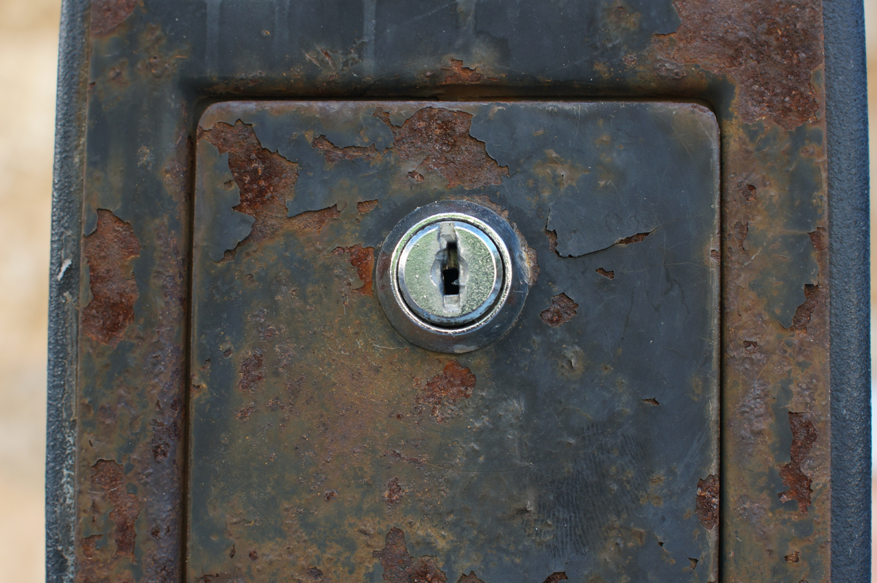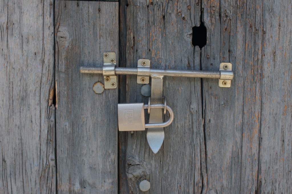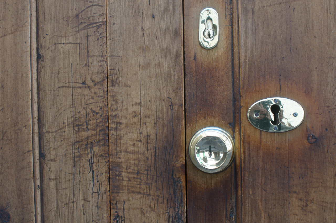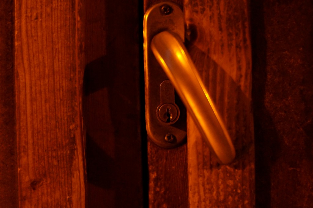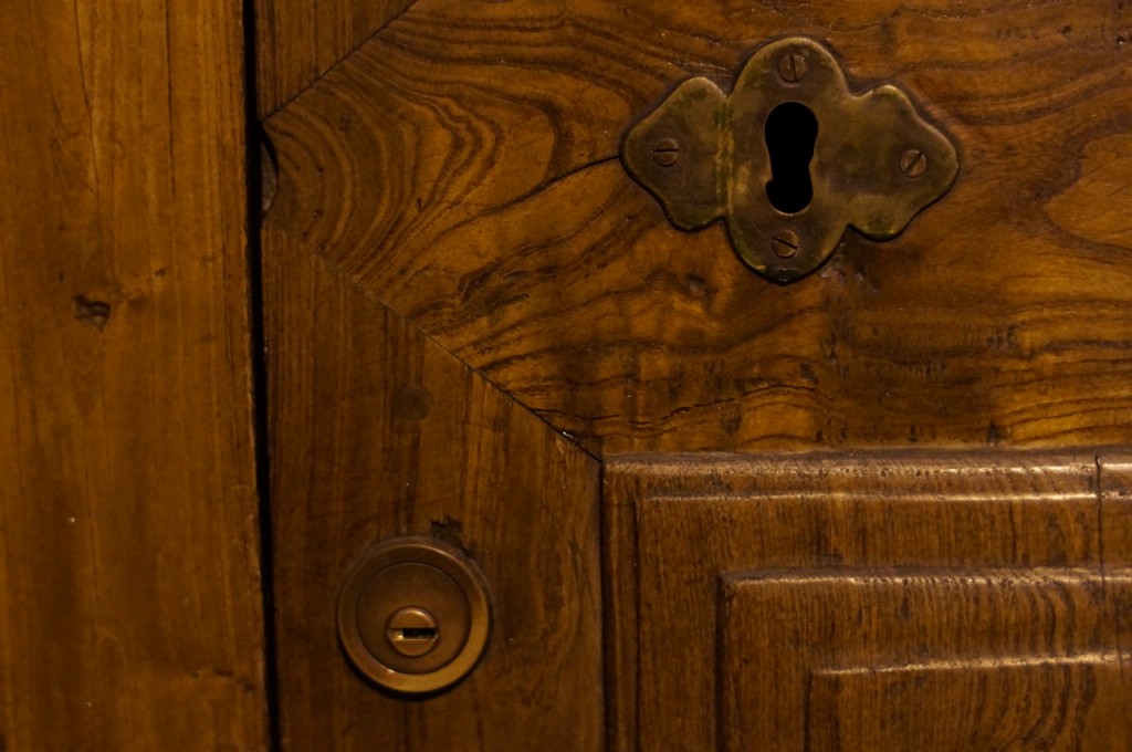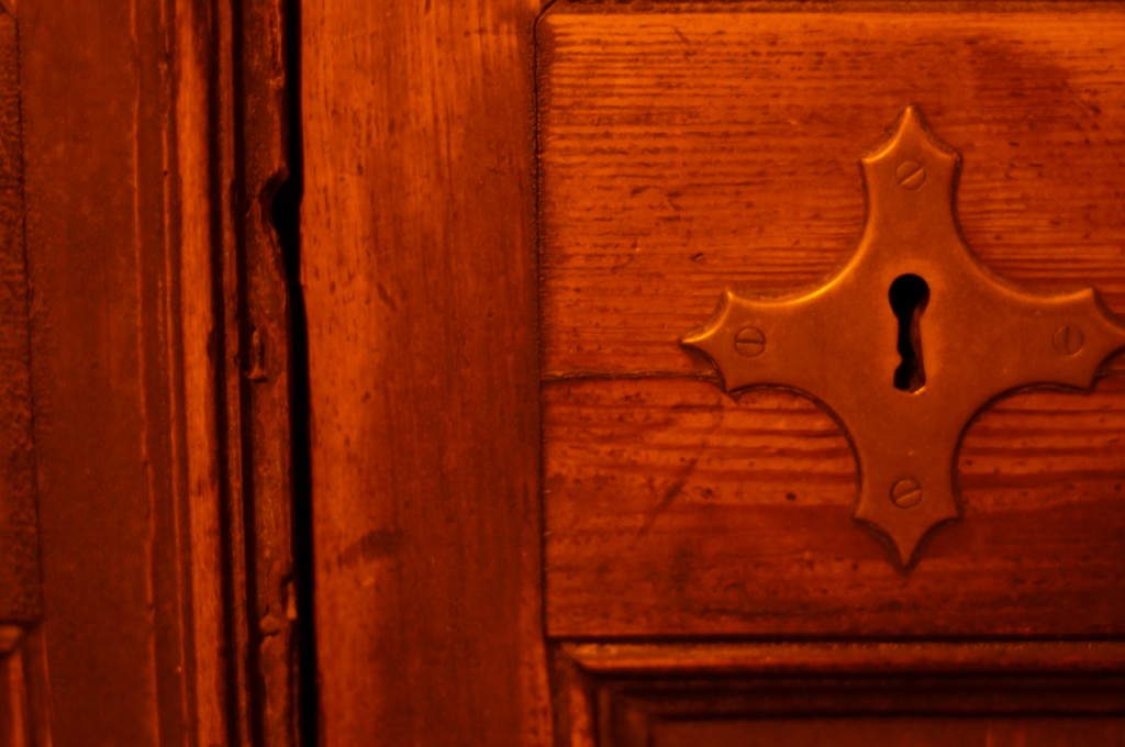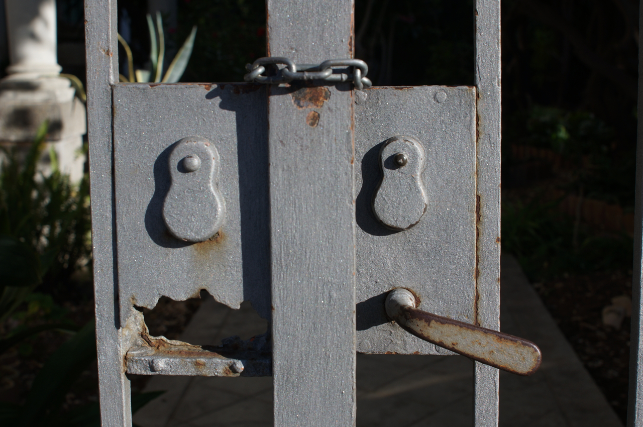 På jakt efter unika motiv i en lilla spansk turiststad upptäckte jag att alla dörrar till privata hus typiskt stod välkomnande på kläm på dagarna. Men också att alla dörrar o grindar var försett med lås som var överraskande varierande i utformningen (svensk lås = Assa lås) och bar på ett personligt avtryck efter högfrekvent användning – vackert slitage.