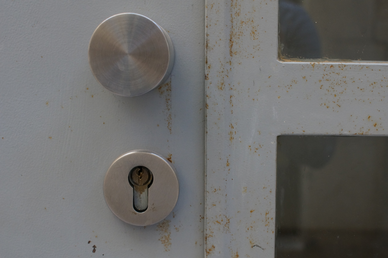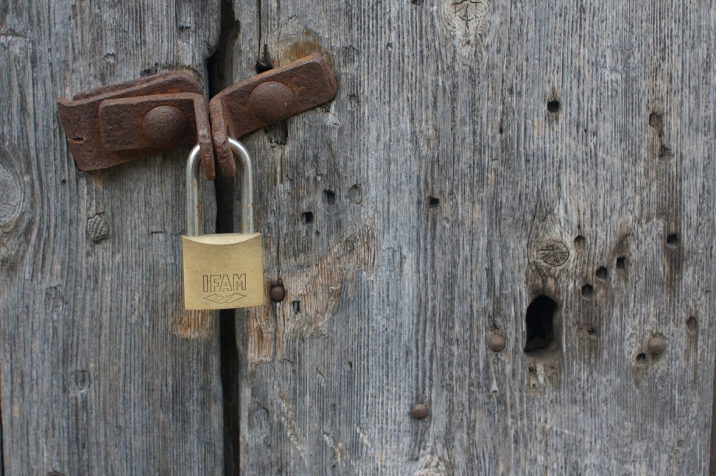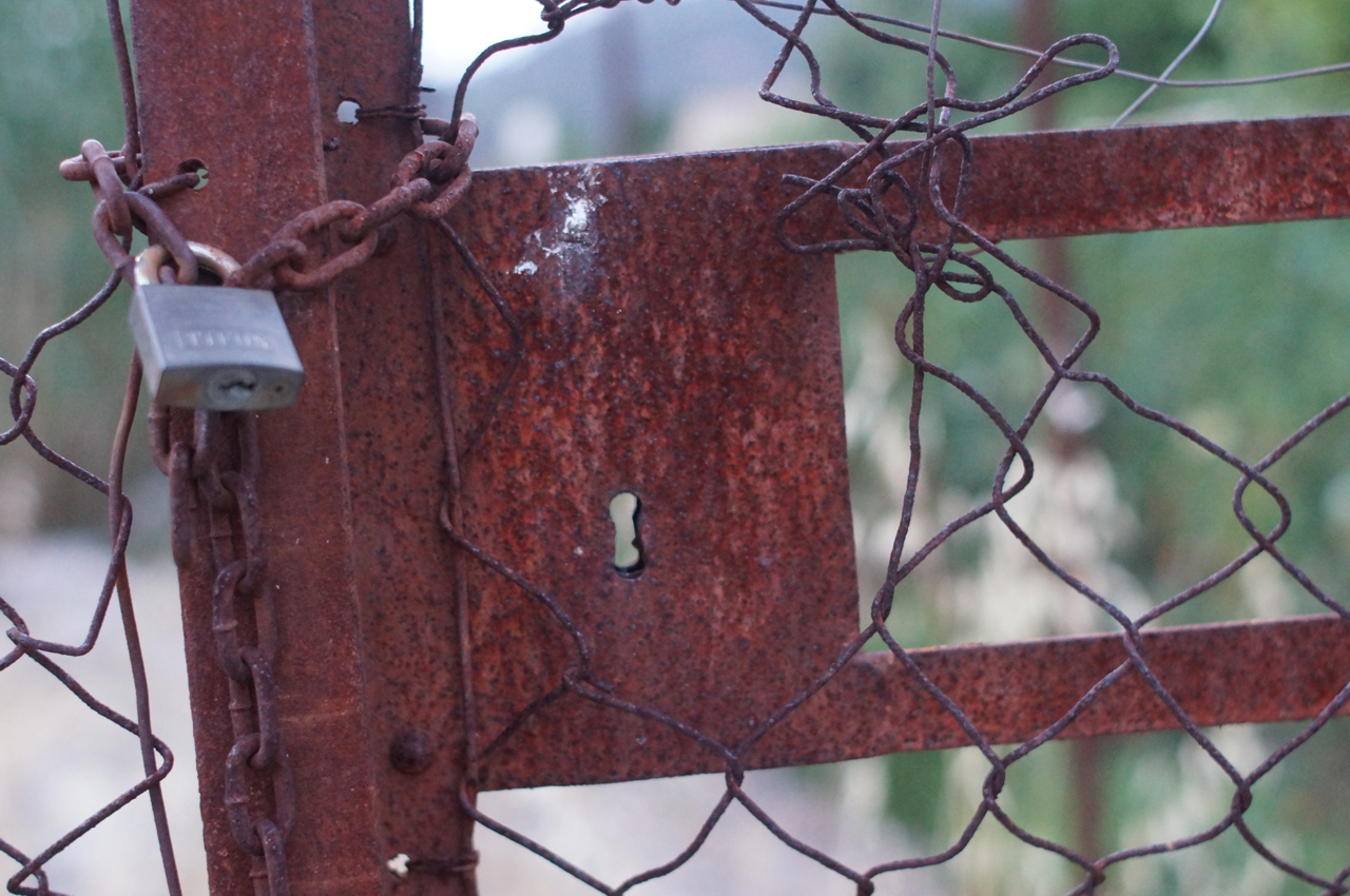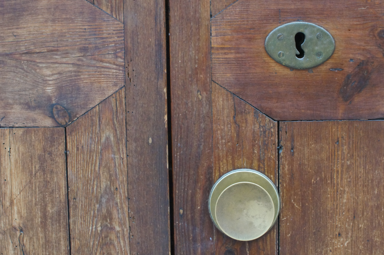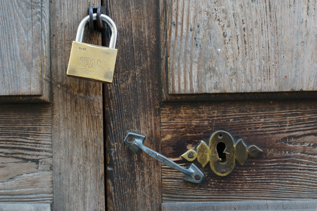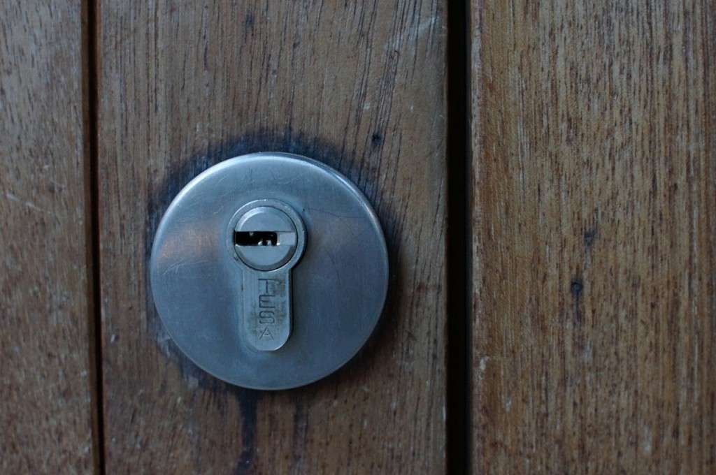På jakt efter unika motiv i en lilla spansk turiststad upptäckte jag att alla dörrar till privata hus typiskt stod välkomnande på kläm på dagarna. Men också att alla dörrar o grindar var försett med lås som var överraskande varierande i utformningen (svensk lås = Assa lås) och bar på ett personligt avtryck efter högfrekvent användning – vackert slitage.