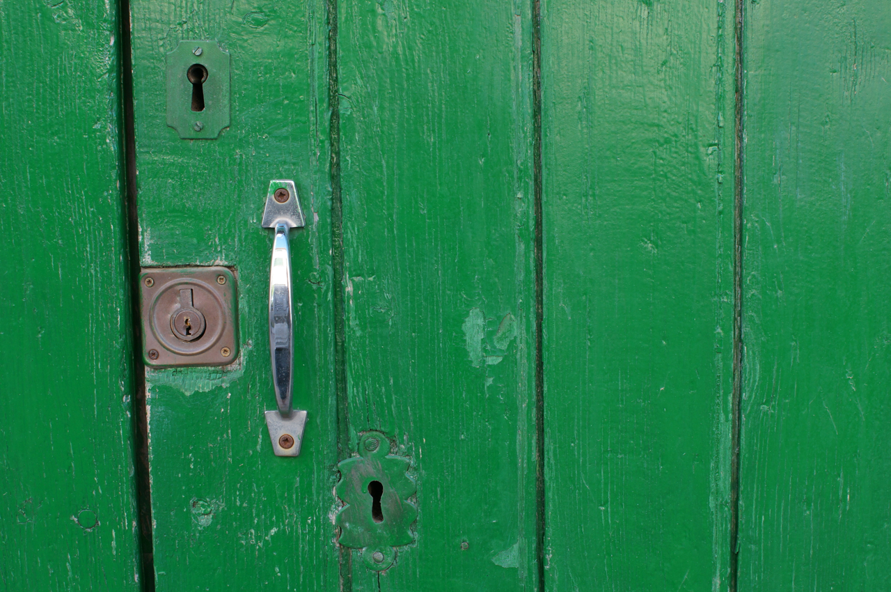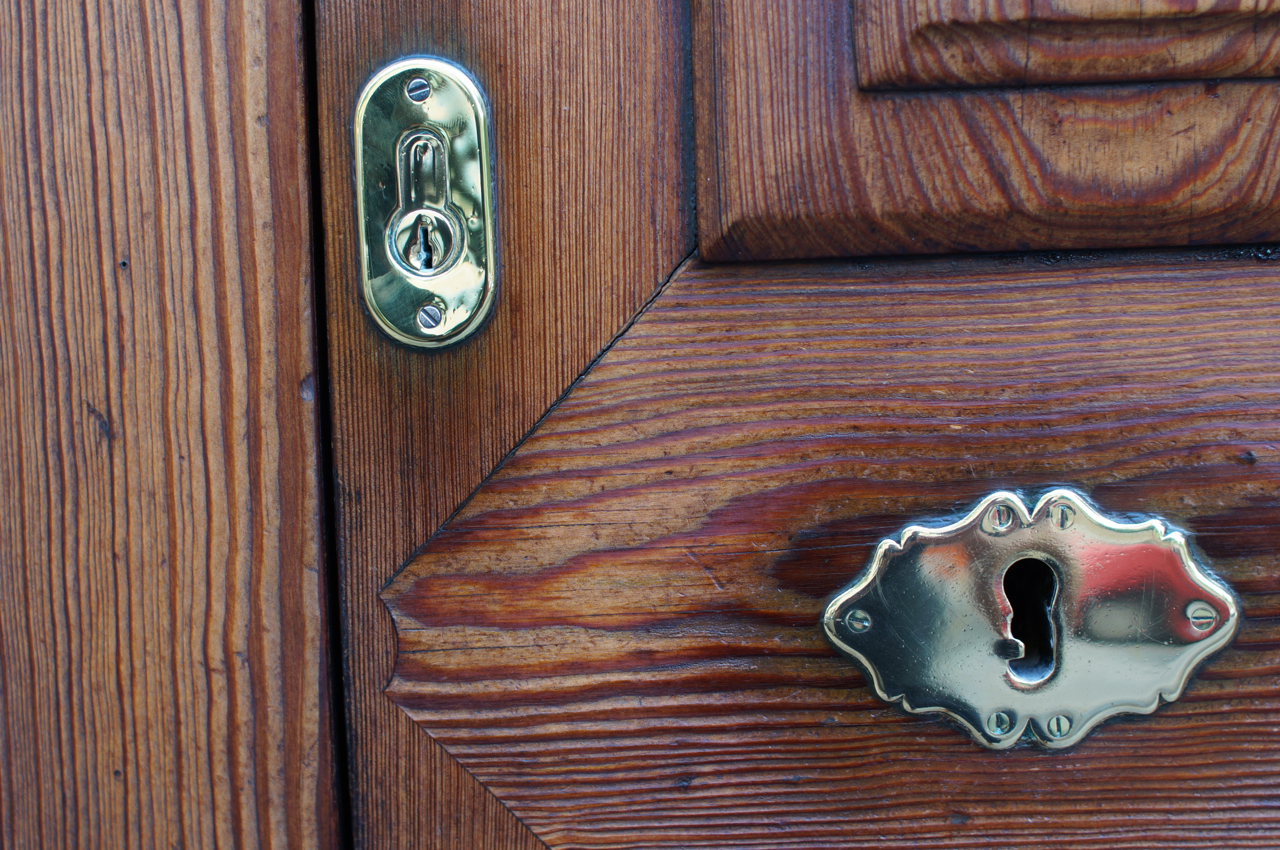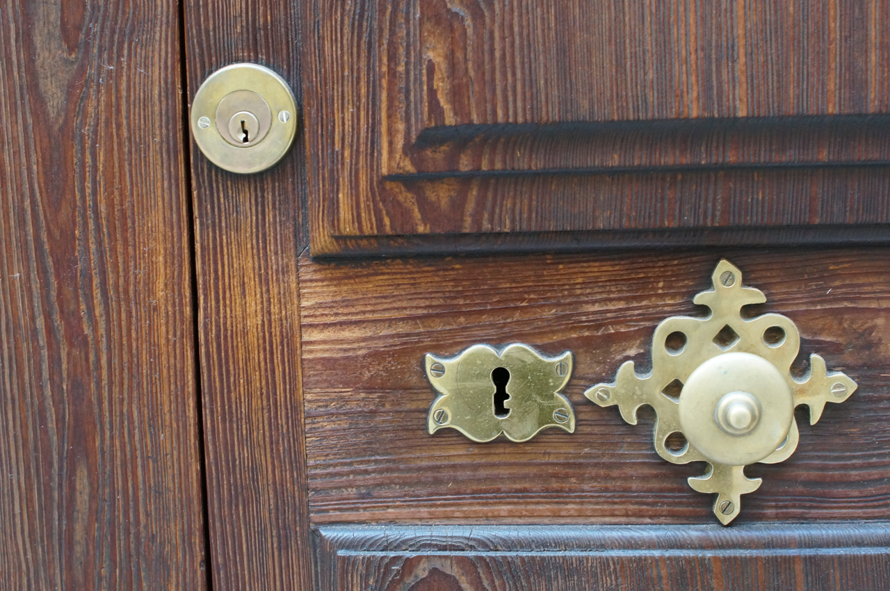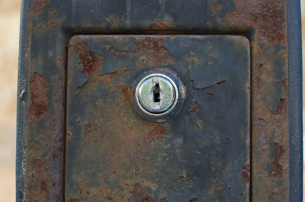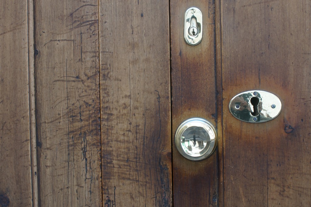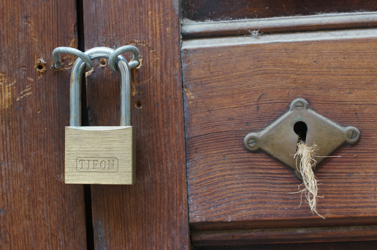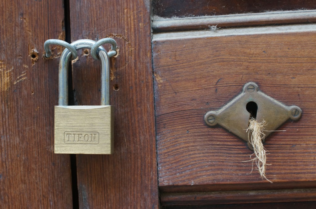 På jakt efter unika motiv i en lilla spansk turiststad upptäckte jag att alla dörrar till privata hus typiskt stod välkomnande på kläm på dagarna. Men också att alla dörrar o grindar var försett med lås som var överraskande varierande i utformningen (svensk lås = Assa lås) och bar på ett personligt avtryck efter högfrekvent användning – vackert slitage.