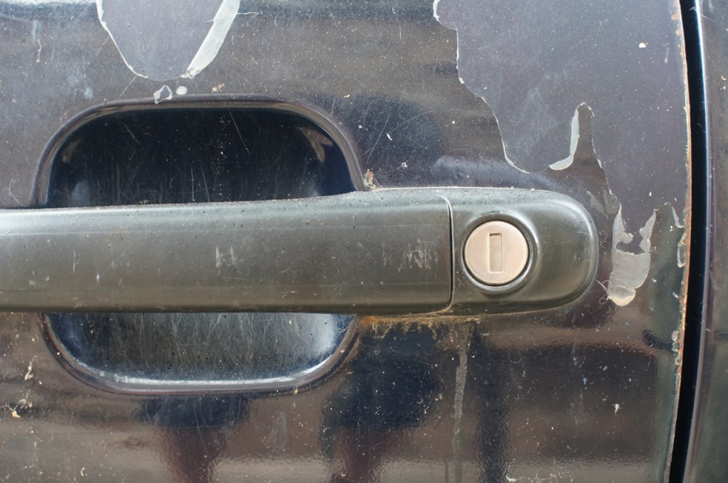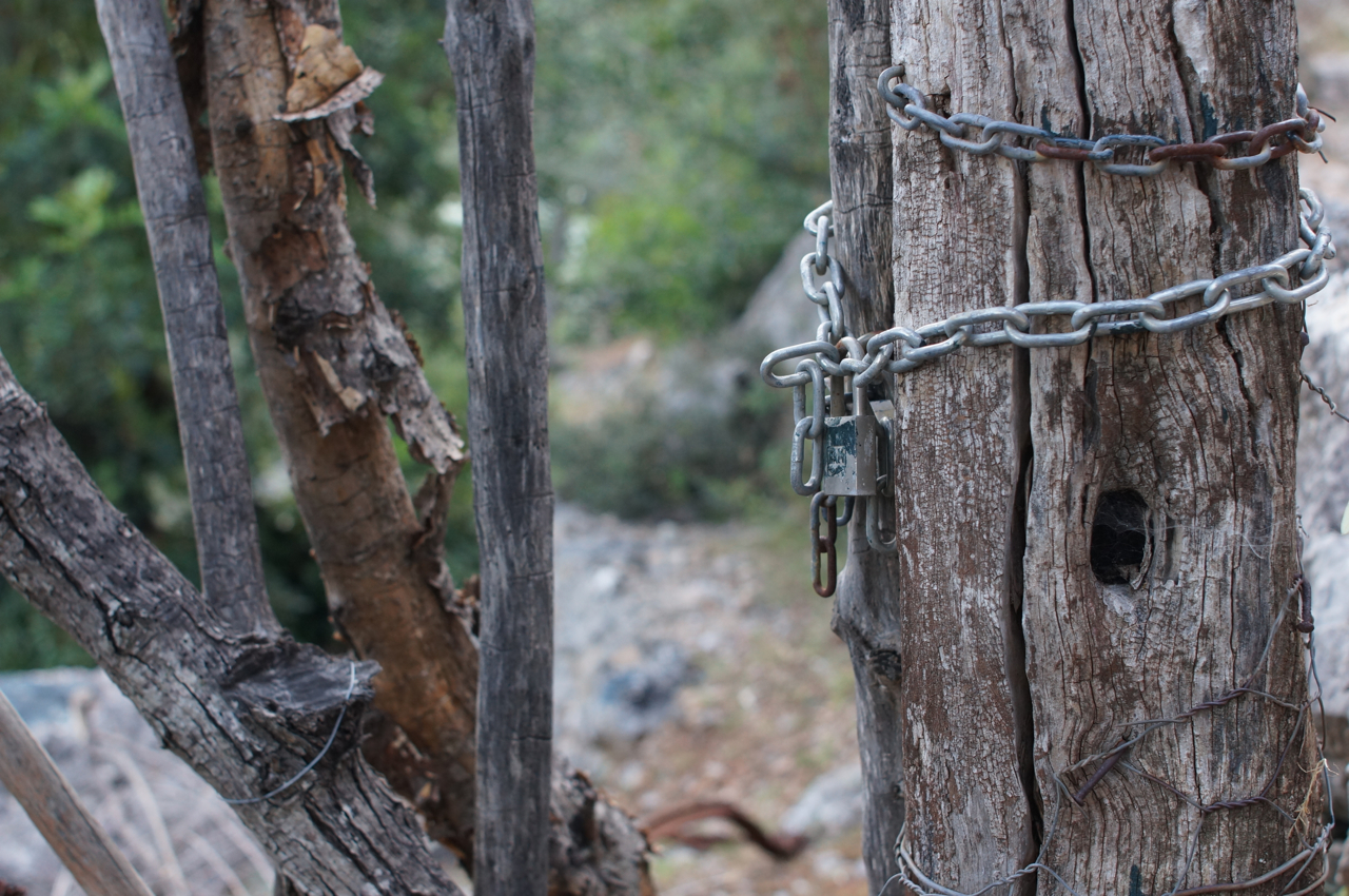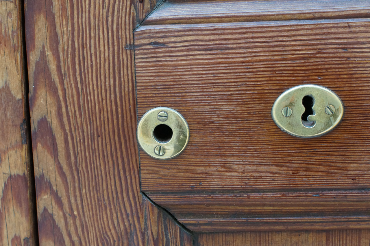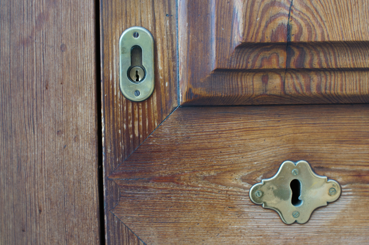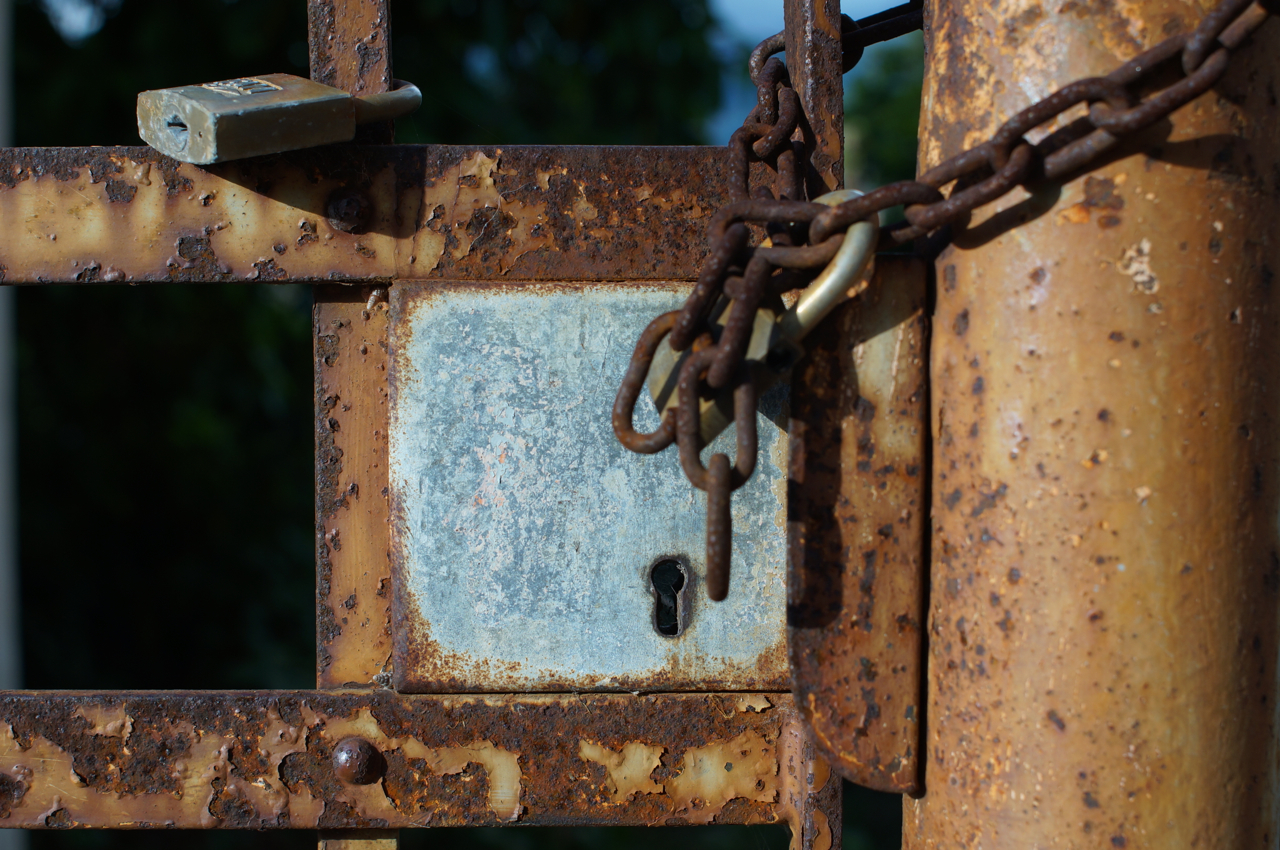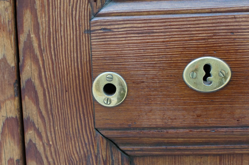 På jakt efter unika motiv i en lilla spansk turiststad upptäckte jag att alla dörrar till privata hus typiskt stod välkomnande på kläm på dagarna. Men också att alla dörrar o grindar var försett med lås som var överraskande varierande i utformningen (svensk lås = Assa lås) och bar på ett personligt avtryck efter högfrekvent användning – vackert slitage.