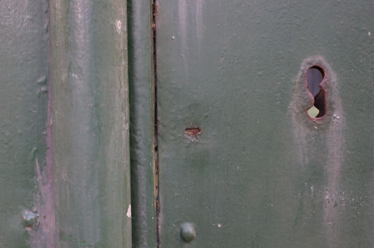Genom att gå nära, märkte jag att varje nyckelhål berättade sin egen historia. Först gick jag efter vackre spår efter användning men till sist var fult kult. Bläddra o lyssna om en bild berättar en historia för dig. Lägg märke till att vissa av 300 nyckelhål är fotat sent på kvällen i gatljusets skär.